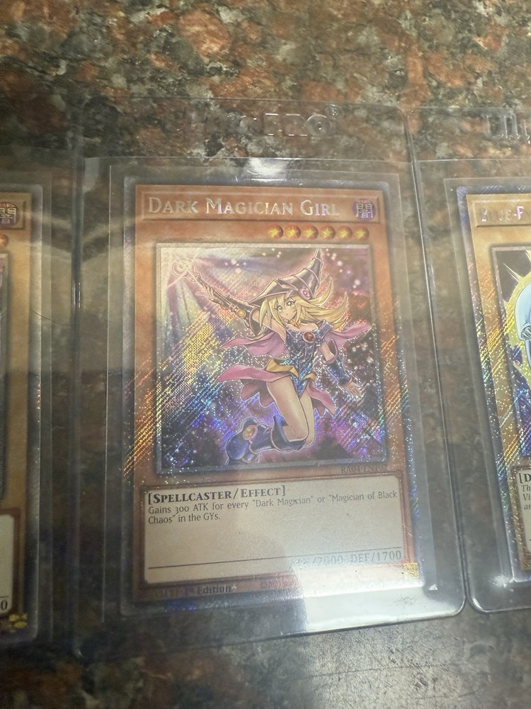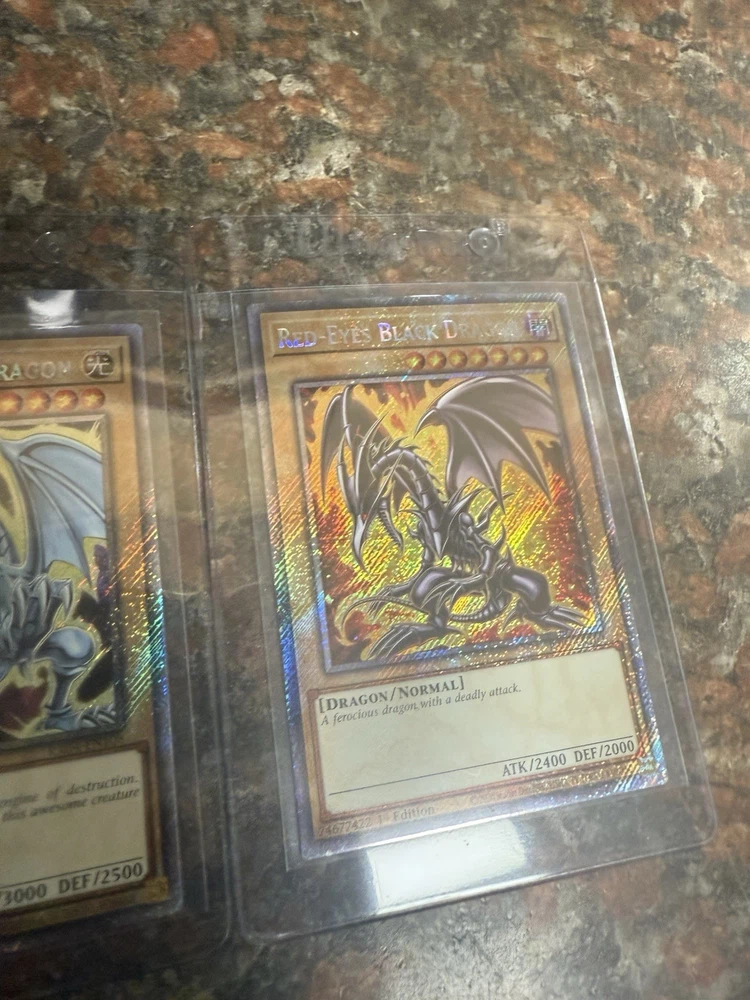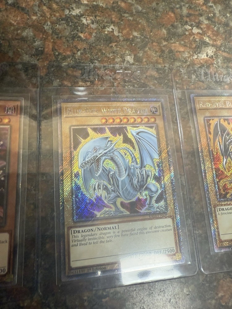 Blue Eyes White Dragon (7th art) , Red Eyes Black Dragon (7th art) , Dark Magician (7th & 9th art) & Dark Magician Girl (7th art) platinum secret rares bundle