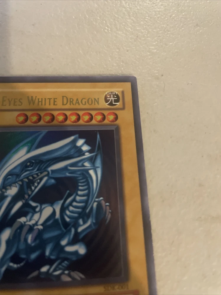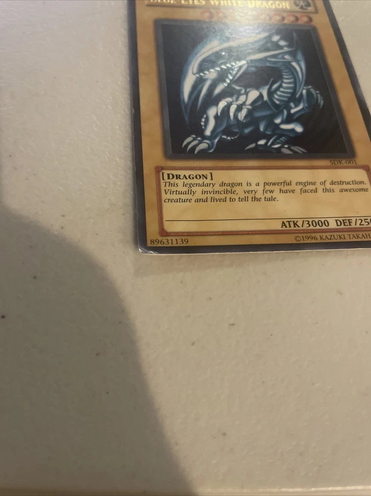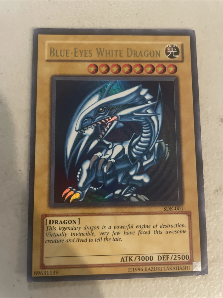 Up for sale is a highly sought-after card from the Yu-Gi-Oh! TCG - the Blue-Eyes White Dragon (Yu-Gi-Oh!) from the Kaiba Starter Deck (SDK-001), first released in 2002. This powerful Dragon-type monster is a must-have for any serious collector or player, and is in a lightly played condition. Its striking blue and white color scheme and impressive attack and defense stats make it a fan favorite, perfect for adding to any deck or display. Don't miss your chance to own this iconic card from the early days of the Yu-Gi-Oh! TCG.