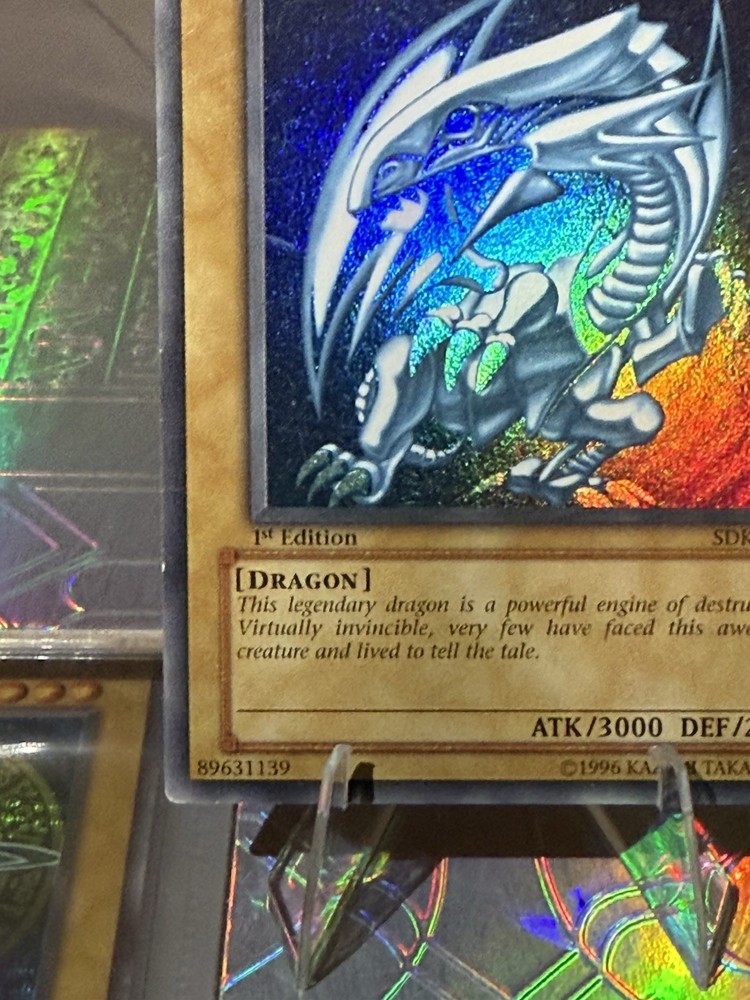 Elevate your Yu-Gi-Oh! TCG collection with the iconic Blue-Eyes White Dragon from the Starter Deck: Kaiba-1st Edition. This Ultra Rare card, showcasing the formidable dragon creature/monster type, is a must-have for both serious collectors and seasoned duelists. With its striking light attribute and impressive attack and defense stats of 3000 and 2500 respectively, it stands as a beacon of power in any deck. Boasting the sought-after 1st Edition label, the Blue-Eyes White Dragon card (SDK-001) is presented in English and remains ungraded, preserving its raw, unaltered allure. Crafted by Konami, this card's rarity and the storied Kaiba-1st Edition set it apart, making it a standout addition to any collection or competitive lineup.