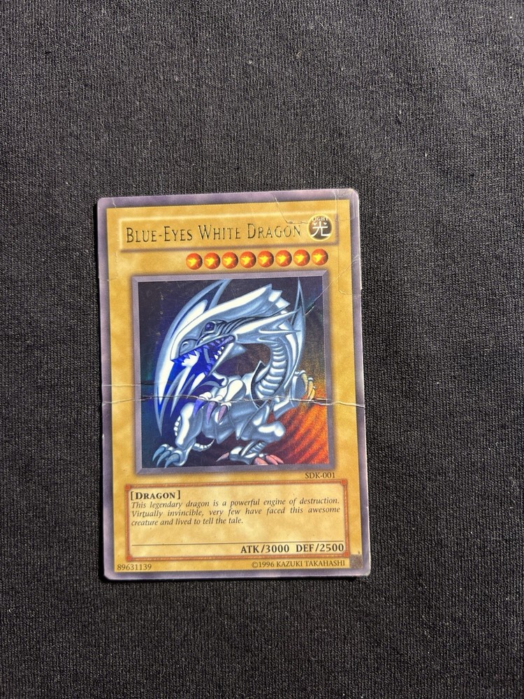 #1 Elevate your Yu-Gi-Oh! TCG collection with the iconic Blue-Eyes White Dragon from the Starter Deck: Kaiba-Unlimited Edition. This Ultra Rare dragon card, numbered SDK-001, boasts an attack power of 3000 and a defense toughness of 2500, making it a formidable addition to any deck. Manufactured by Konami and presented in English, the card is a must-have for both seasoned collectors and players seeking to make a powerful impression at their next duel. With its unlimited feature, it's readily available to enhance your collection or to be the centerpiece of your next strategic gameplay.