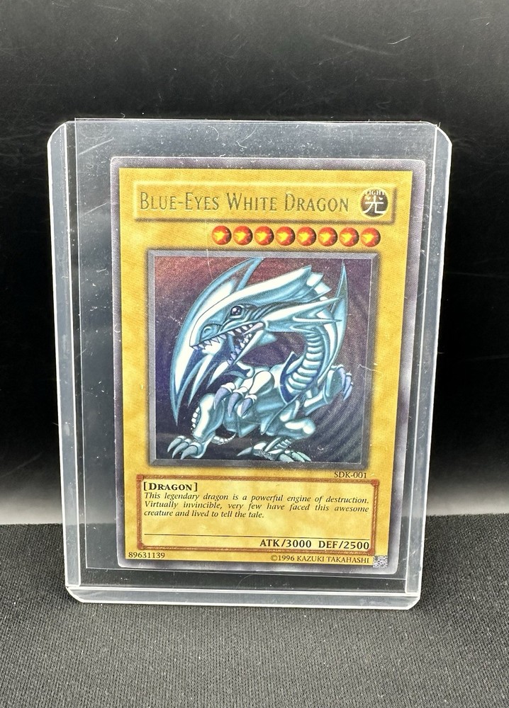 The Blue-Eyes White Dragon SDK-001 Starter Deck: Kaiba-Unlimited Edition Unlimited is an ultra-rare collectible card game featuring the character Seto Kaiba and his signature dragon, the Blue-Eyes White Dragon. This deck includes cards made of card stock with attributes of light, defense of 2500, and an attack power of 3000. Manufactured by Konami, this English-language set is perfect for fans of Yu-Gi-Oh! TCG looking to add a powerful and iconic card to their collection.