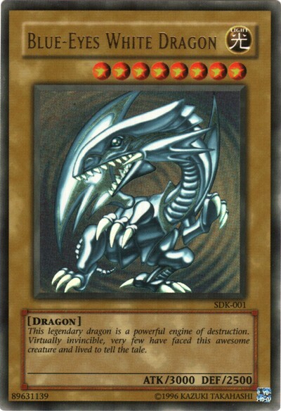 Blue-Eyes White Dragon SDK-001; Ultra Rare; Lightly Played; Starter Deck Kaiba Yu Gi Oh/Yugioh/YGO Starter Deck Kaiba First BEWD released in NA! CONDITION: Lightly Played. Light edgewear and light impressions around the top left corner of the card. Card will be sent in a sleeve, a toploader, and a small personally-addressed bubble mailer. Payment must be made within 72 hours of selecting the card. Order will be shipped within 2-3 business days of purchase completion.