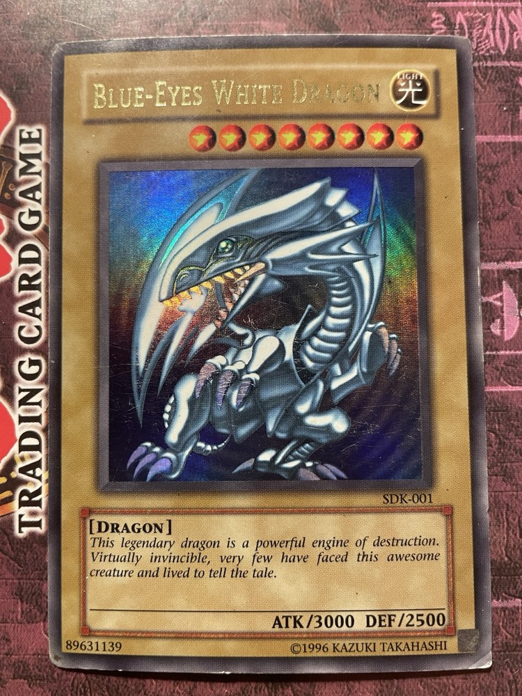 1x Blue-Eyes White Dragon (SDK-001) Ultra Rare Unlimited Edition. Condition is heavily played. Shipped with USPS. Fast shipping with tracking and will be sent in a top loader. Thank you!