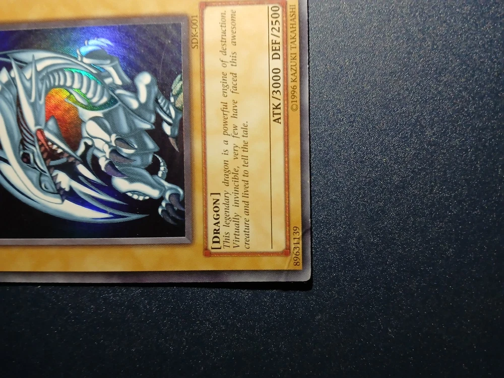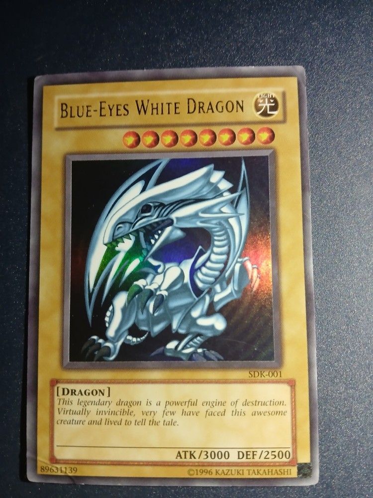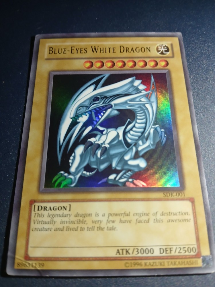 The Blue-Eyes White Dragon SDK-001 is a highly sought-after collectible card game product from the Yu-Gi-Oh! TCG series. This ultra rare card features a light attribute, with a powerful defense of 2500 and an attack power of 3000. Manufactured by Konami, the card is in English language. It is a normal type card with a level of 8 and is sure to be a valuable addition to any Yu-Gi-Oh! card collection. the card will be sold as it is shown in picture it will be package in a sleeve inside a top loader with a waterproof packaging shipped in between two pieces of cardboard it will first be sent to ebay for authentication then shipped to you from ebay
