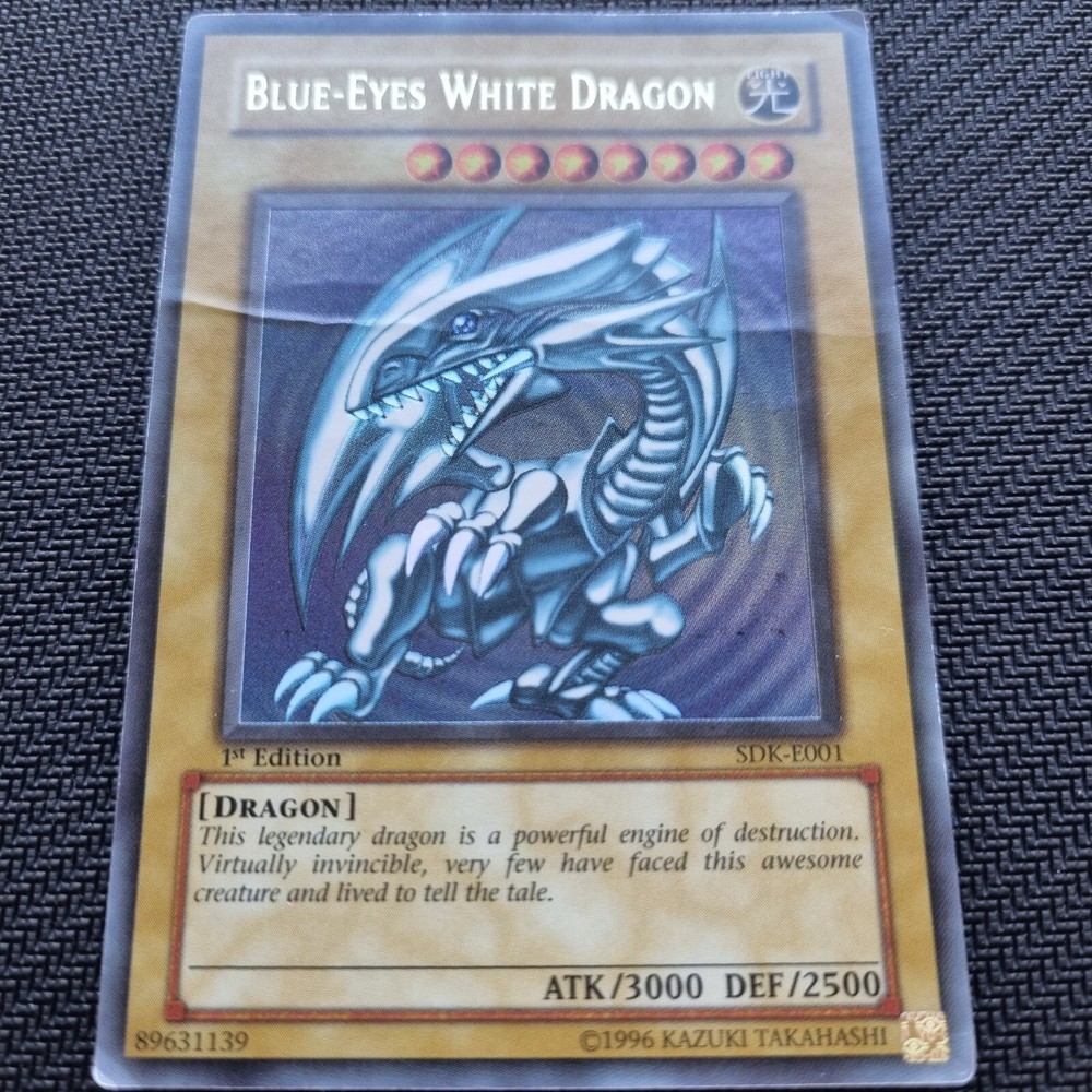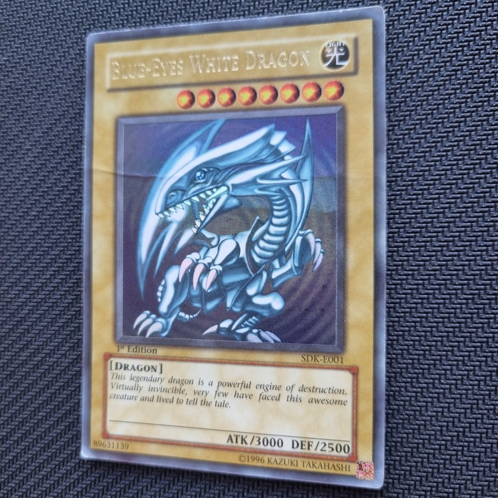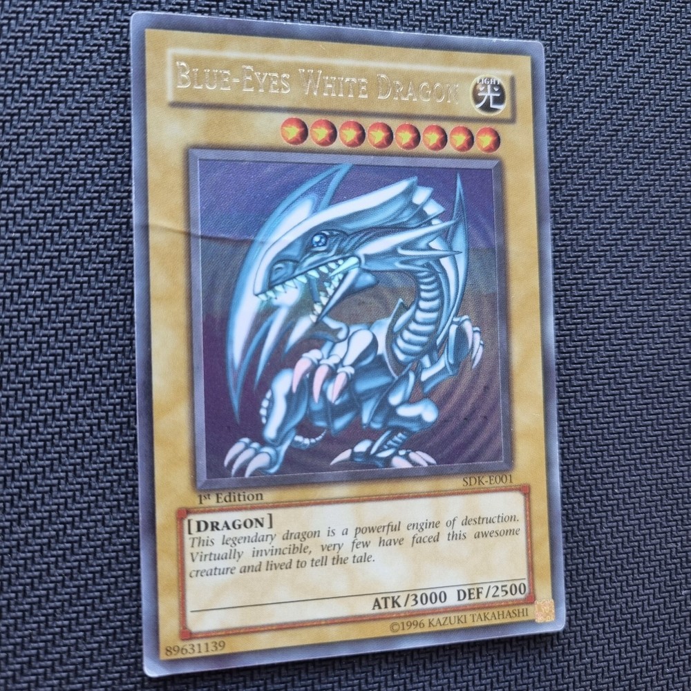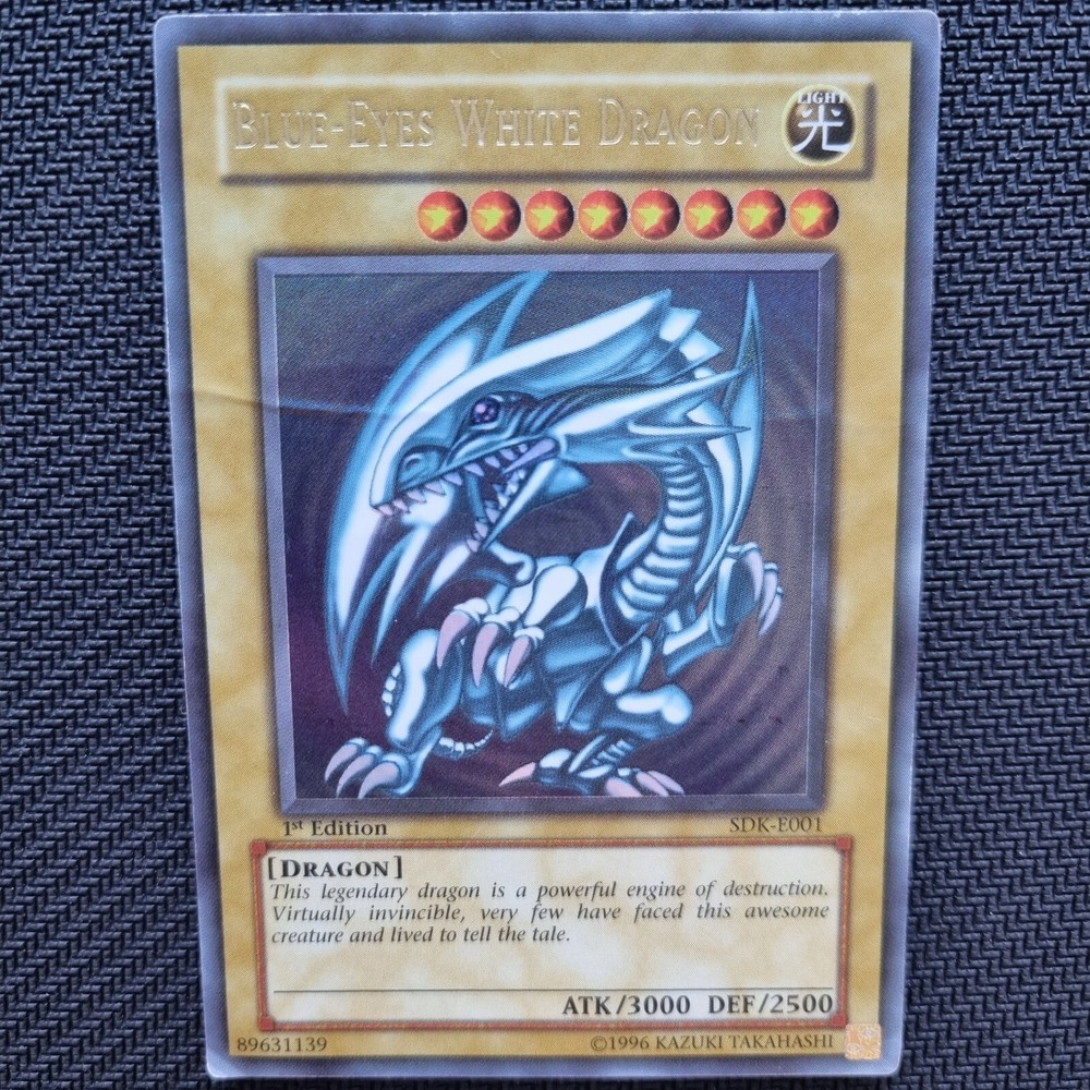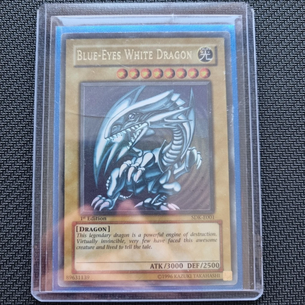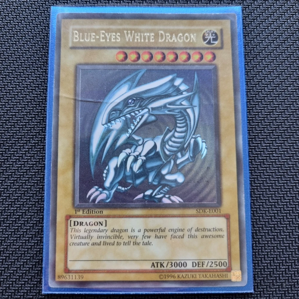 This Blue-Eyes White Dragon is a nostalgic gem for any YuGiOh! collector! Despite being heavily played, the 1st Edition European print holds serious value. The card arrives protected in a sleeve and top loader, making it a must-have for Kaiba fans. The condition is clearly shown, so you know exactly what you're getting—a piece of childhood memories!
