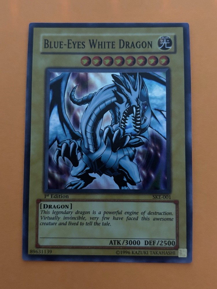 You are bidding on a Blue Eyes White Dragon SKE-001 1st Edition Super Rare Near Mint/Mint Card. Bid with confidence. I have 100% feedback. Make an offer. I will not reject any offers, only accept them or counter them. And I respond quickly to offers! International buyers are welcome. Be sure to check out my other auctions. Happy Bidding!