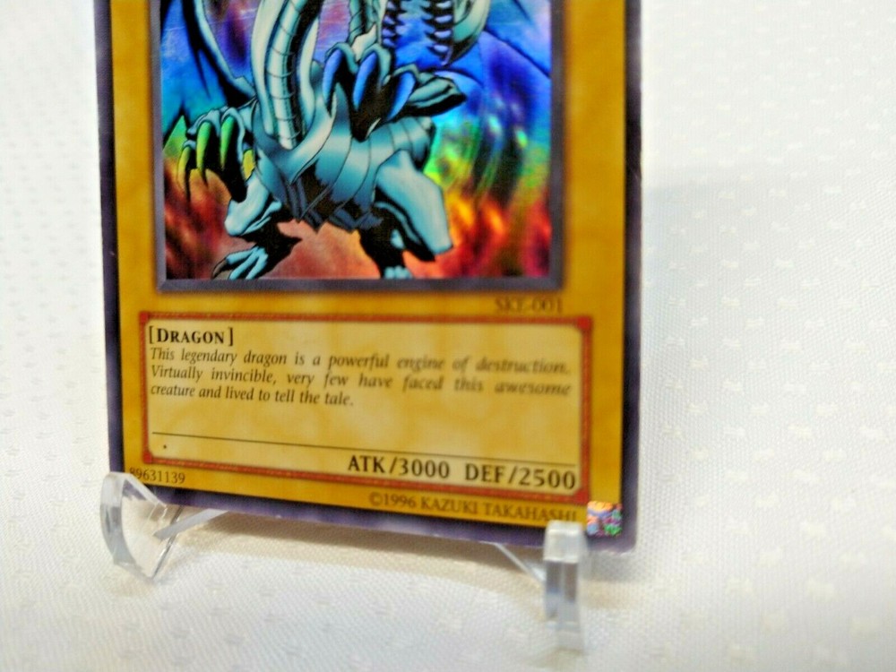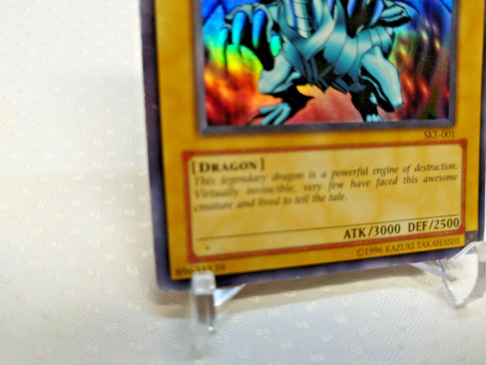 Blue-Eyes White Dragon SKE-001 Holographic Ultra Rare Yugioh Card. This card is in Near MINT condition and has been in my personal collection since new. Was pulled from pack and sleeved and stored in card binder . Only unsleeved for photos Cards are sold as is, I take time to take detailed picifees so that you can see true quality of card and you know what you're getting. . Ready to be graded! Shipped SECURELY in bubble packaging and not cheap envelope like most sellers! Shipped with tracking USPS First Class. SAME DAY SHIPPING!!!