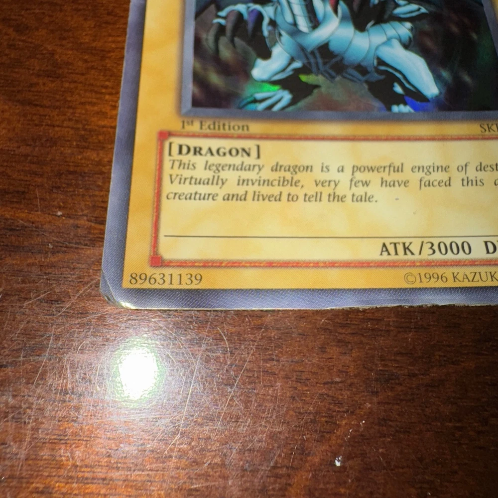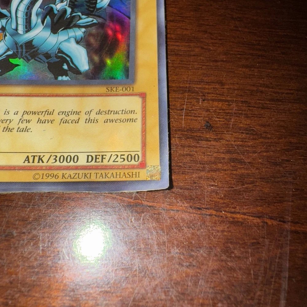 Unleash the power of the iconic Blue-Eyes White Dragon with your gameplay, courtesy of the Starter Deck: Kaiba Evolution 1st Edition Foil card. This super rare gem, card number SKE-001, boasts an impressive 3000 attack power and 2500 defense toughness, making it a formidable addition to your Yu-Gi-Oh! TCG arsenal. Featuring a stunning foil finish that captures the eye, this English language card from Konami is a must-have for collectors and players alike. Whether it's to enhance your strategic gameplay or to complete your collection, the Blue-Eyes White Dragon from the Kaiba Evolution set is a timeless piece of Yu-Gi-Oh! history. PLEASE NOTE: You’ll also be receiving some extra foil Yugioh cards for free also. They also are HP