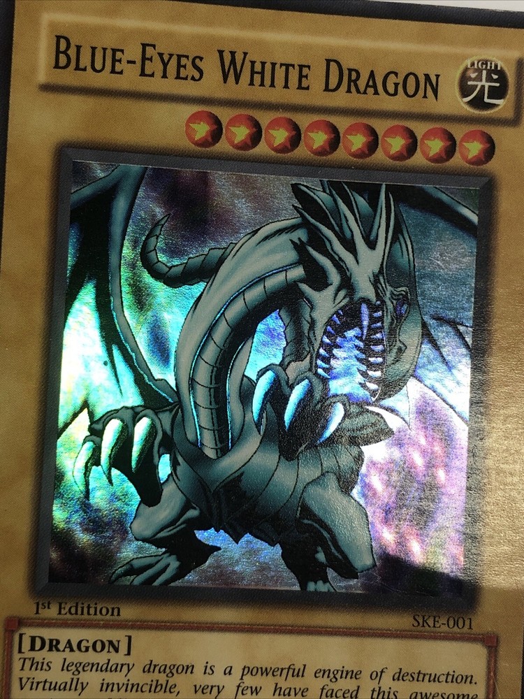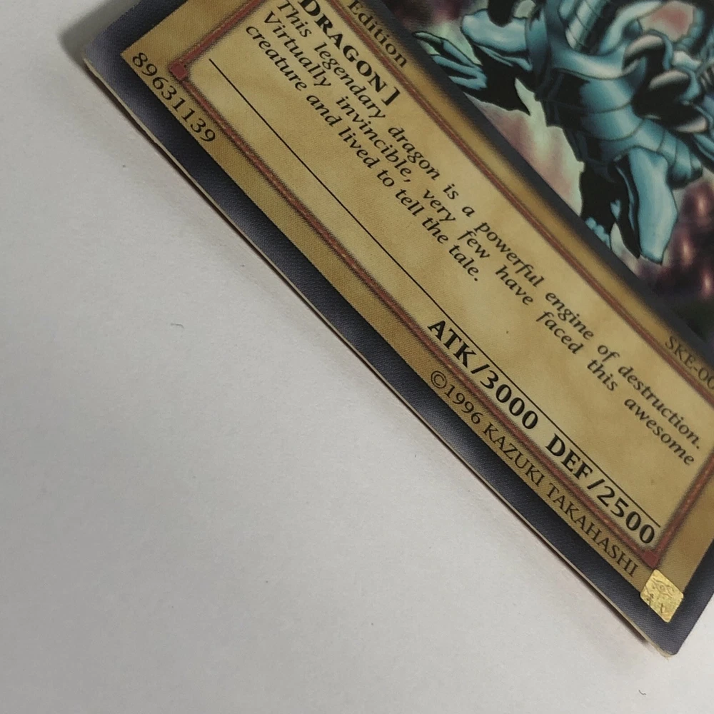 Blue-Eyes White Dragon (SKE-001 Starter Deck: Kaiba Evolution) 1st Edition LP/MP Condition: - overall great condition - minor wear from play - minor crease on card (see pics) - authentic - no rips, fully intact Fast shipping See pics for details and condition The "Blue-Eyes White Dragon" card is a Super Rare card from the Starter Deck: Kaiba Evolution set in the Yu-Gi-Oh! TCG. This English language card features a powerful Dragon creature type with 3000 Attack and 2500 Defense, making it a formidable addition to any deck. Manufactured by Konami, this 1st Edition card is sought after by collectors and players alike for its iconic status in the game.