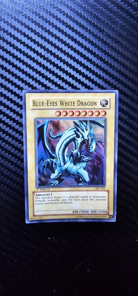An old card from my old yugioh collection Saw it was worth something so thought I'd sell it. thought it was one of the original blue eyes so I had put it in a sleeve. Unfortunately it wasn't but it's still a relatively old and precious card rarity.