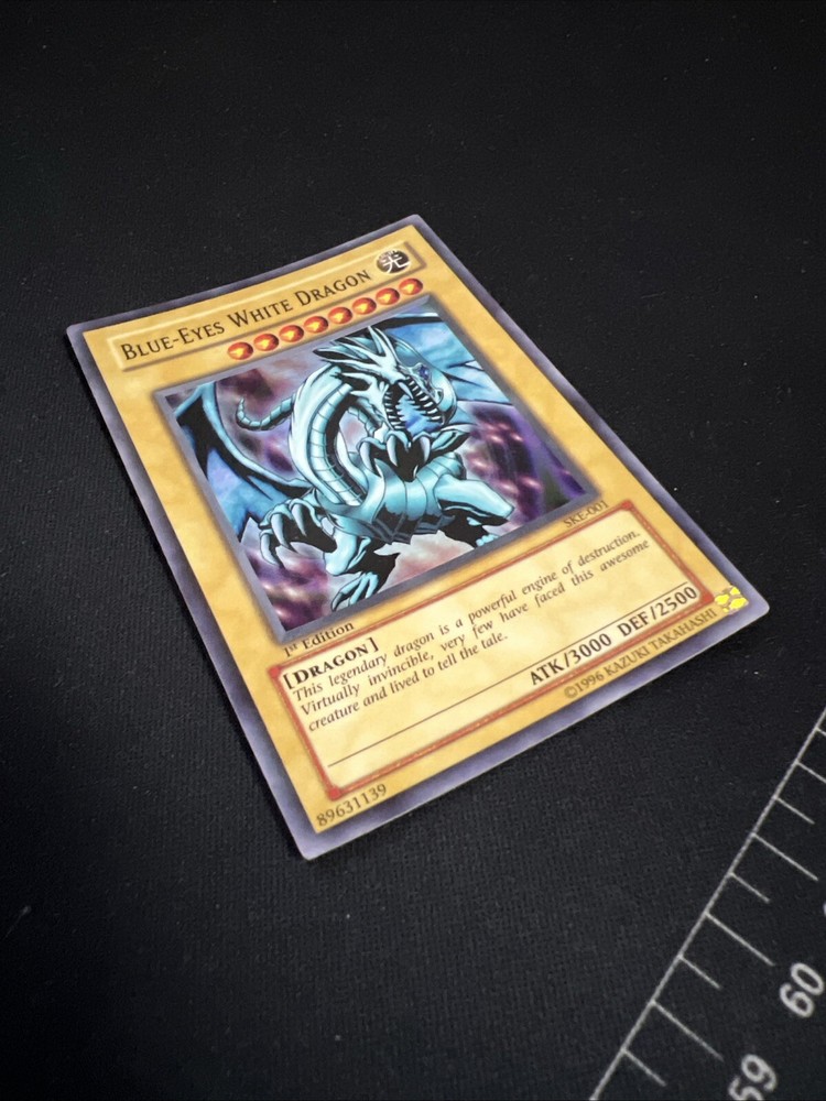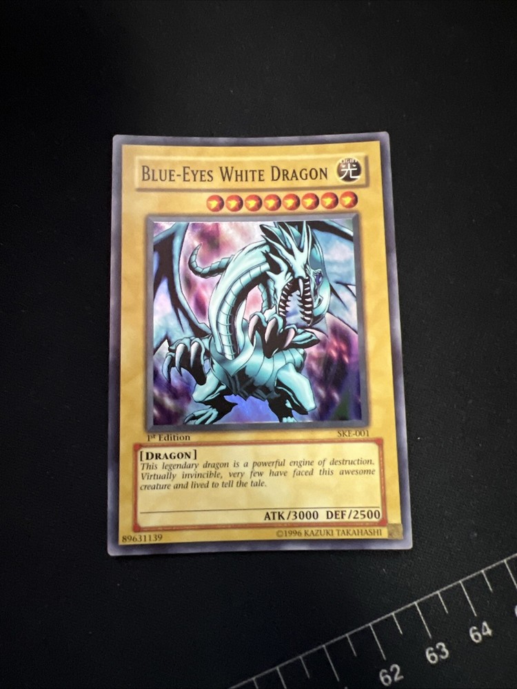 The "Blue-Eyes White Dragon" card is a Super Rare Normal card from the Starter Deck: Kaiba Evolution set of the Yu-Gi-Oh! TCG. This 1st Edition card has a powerful Attack of 3000 and a Defense of 2500, making it a formidable Dragon-type monster. It is a highly sought after card for collectors and players alike due to its iconic status in the game.