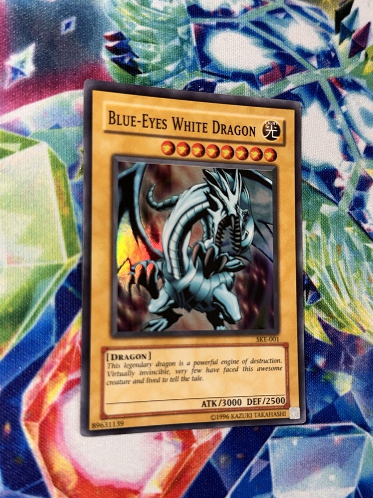 The product is a collectible card game card named Blue-Eyes White Dragon, with the card number SKE-001. It is a normal card type with an attack/power of 3000 and a defense/toughness of 2500. The card is a super rare card from the Starter Deck: Kaiba Evolution set, manufactured by Konami. It is unlimited and in English. The card features a dragon creature/monster type with a light attribute/color. - All items will be shipped by the next day in secure packaging *Please check out my other listings!* *If you have any questions about the cards please message me!*