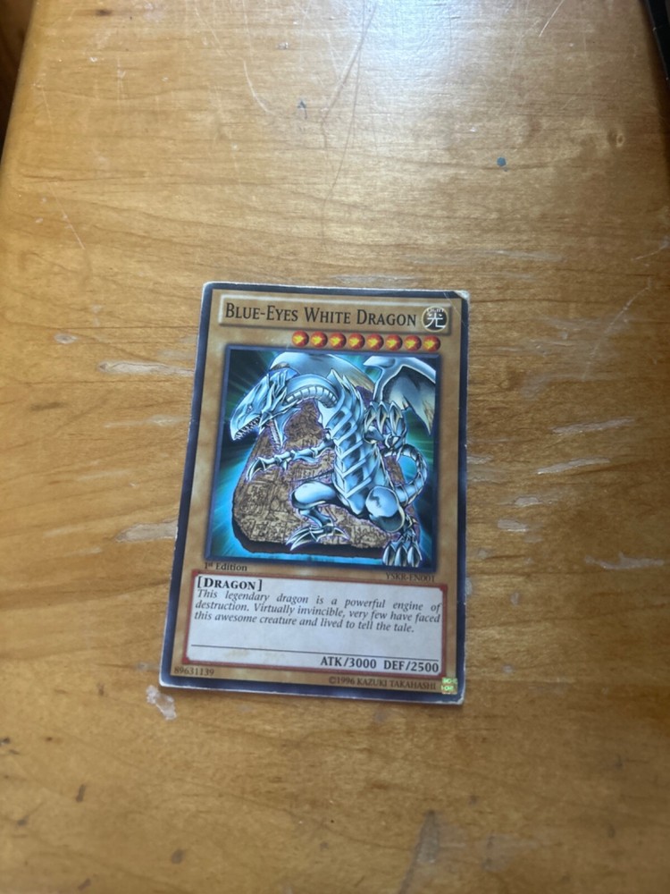The Blue-Eyes White Dragon (UTR) YSKR-EN001 Starter Deck is a first edition Yu-Gi-Oh! TCG product by Konami. This ultimate rare card features a light dragon theme with high defense and attack stats of 2500 and 3000 respectively. The English language card is a sought-after collectible for fans and players of the game, making it a valuable addition to any deck or collection. With its unique design and rarity, the Blue-Eyes White Dragon is a must-have for any Yu-Gi-Oh! enthusiast.