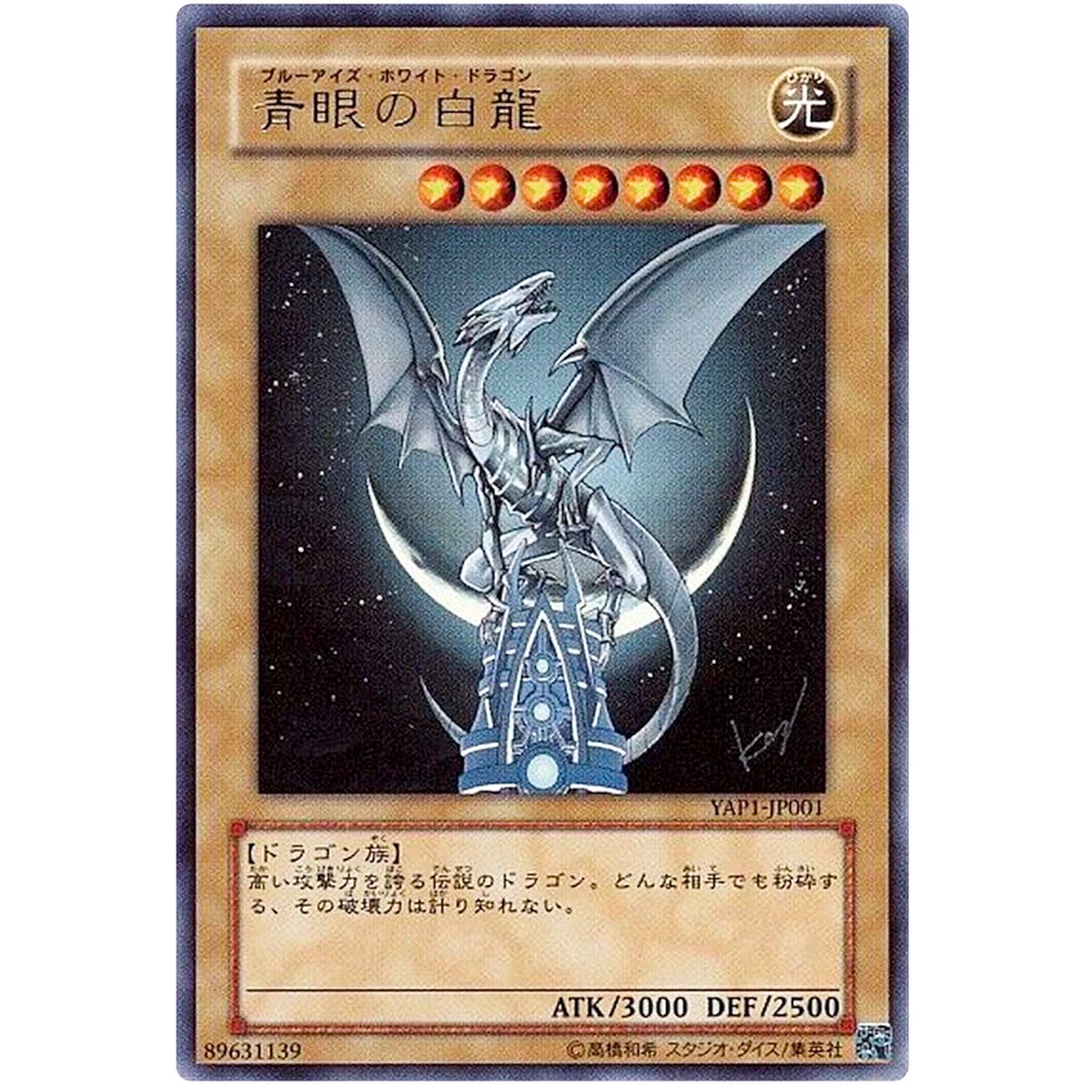 Item Discription YAP1-JP001 Blue-Eyes White Dragon Front Back Card Name : Blue-Eyes White Dragon Character : Blue-Eyes White Dragon Rarity : Ultra Rare Card Number : YAP1-JP001 Set : YuGiOh Promo Type : - Language : Japanese Card Condition : Near Mint Purchased cards will be clipped with cardboard, waterproofed, and shipped without any scratches or folds. Cards over $20 will be packed even tighter with a loader for each card. Shipping Policy Free shipping worldwide. Free shipping does not include tracking. There is an additional cost of US $4 for tracking. If you purchase cards totaling US $30 or more, you will receive a free tracking number. All of the products will be shipped from Japan. Economy Shipping Air mail ( no tracking ) Free Shipping Delivery time : About 2-4 weeks Standard Shipping Air mail ( with tracking ) US $4 Delivery time : About 2-4 weeks Expedited Shipping FedEx or EMS or DHL ( with tracking ) US $24 Delivery time : About 1-2 weeks Payment Policy We accept all major credit cards and Paypal payments. Return Policy We hope you will love your purchase, houever if you need to return it, we have a 30 day return policy. International Buyers Import duties, taxes, and charges are not included in the item price or shipping cost. These charges are the buyerʼs responsibility. Please check with your countryʼs customs office to determine what these additional costs will be prior to bidding or buying. If the cancellation is due to the buyer, wewill charge a fee. If there is a remote charge for your address, we will charge you for additional shipping. We are honored to receive the eBay Japan Awards 2022! I am thrilled to share that my store has won the eBay Japan Awards 2022 ! This amazing accomplishment wouldnʼt have been possible without our wonderful customers. A heartfelt thank you for your ongoing support. We will continue to improve our services, offering a diverse selection of items and top-notch customer care Thank you for helping us achieve this prestigous recognition, and we look forward to serving you in the future! Copyright ©️ 2023 Animart Japan
