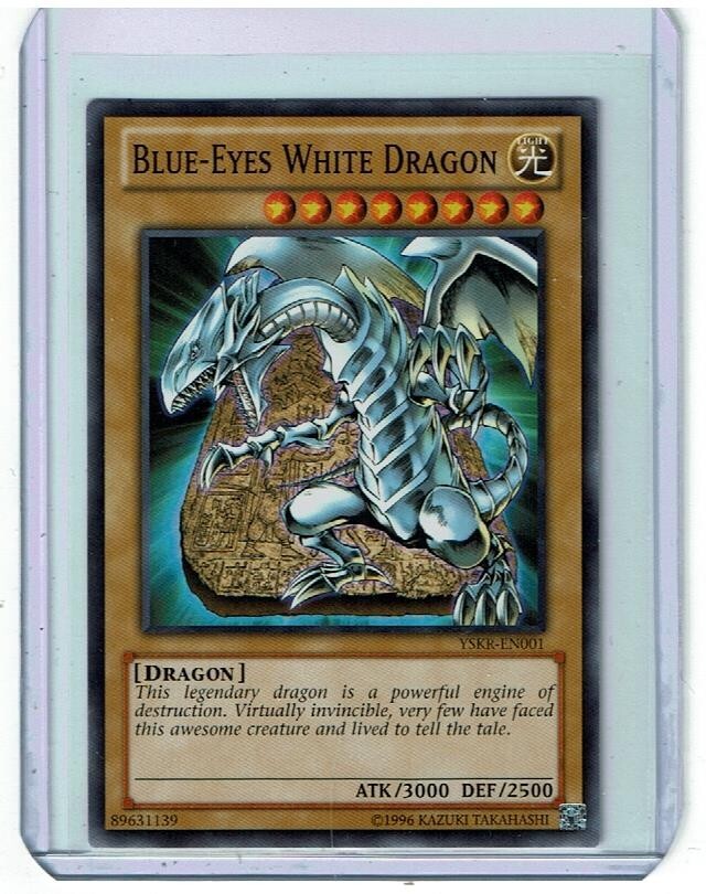 You are bidding on one, Blue-Eyes White Dragon, Non Holographic, Yu-Gi-Oh card. Card is in Lightly Played condition. Card number YSKR-EN001. You are bidding on the exact card in the scan. I have been selling on ebay since 2002 and have over 10,000 positive feedbacks, so bid with confidence. Immediate payment is required. When you receive your card, please take a minute and leave feedback for me so I know you have received your card. I have an automated system that will then leave feedback for you. Prices do fluctuate, so if you see something in my store that you are interested in, and the price seems off, feel free to message me and I will check what the card has been selling for over the last 30 days or so. I cannot guarantee I will change the price, but I will check it. Also, due to the costs involved with selling on ebay, and offering free shipping, no card will be sold for less than 1.50. SHIPPING COSTS are FREE All items are shipped within 48 hours of receipt of payment. PLEASE NOTE!!!!! If you have bought more than one card and are paying with Paypal, please send ONE payment for the total amount. If you do not know the total amount or are having any trouble, feel free to e-mail us for your total. Please feel free to e-mail us with any questions you may have. If you do not see the specific card you are looking for please e-mail us a list of the cards you are looking for and we will try to fill your list for you. All lists are filled on a first come first filled basis. MOST cards will be sold at 50 percent of the Beckett Price Guide. Please e-mail us for prices on specific cards. Thanks for looking!!! Terry`s Card Shop