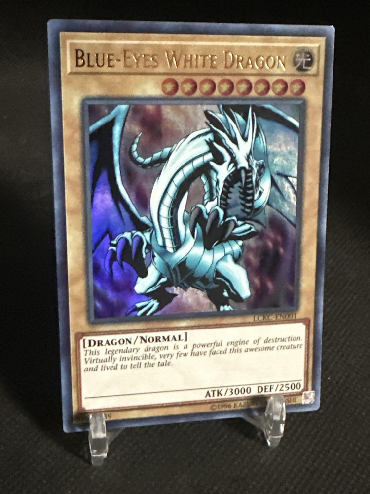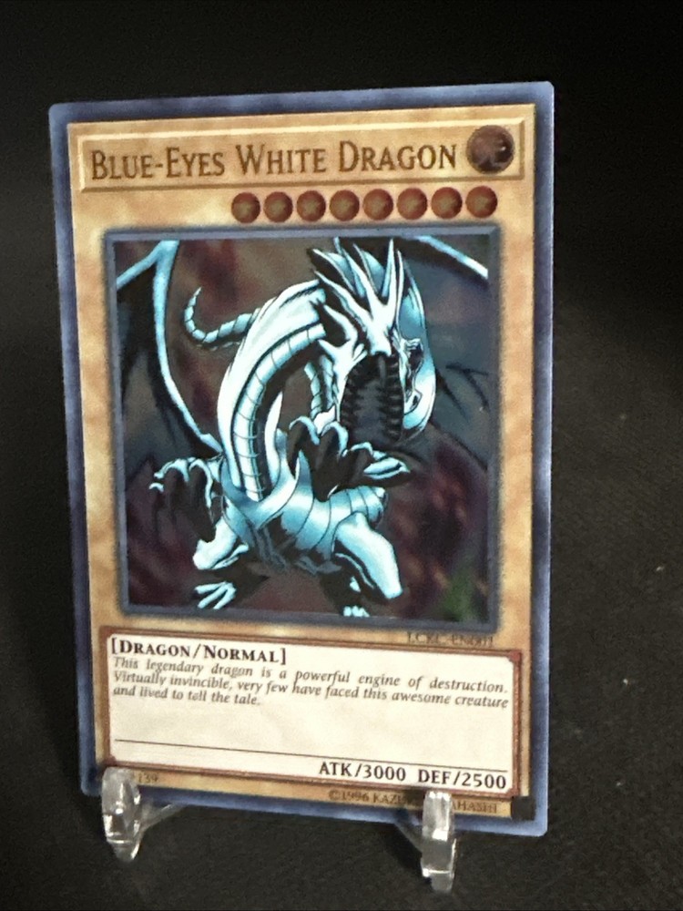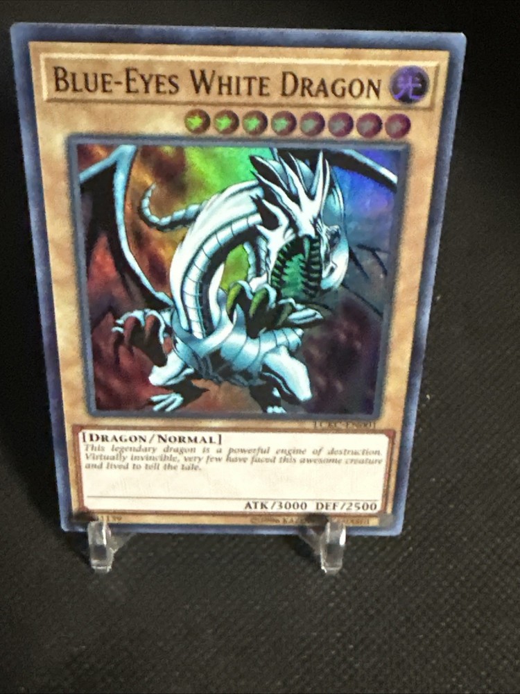 This rare and sought-after Blue-Eyes White Dragon card is a must-have for any serious Yu-Gi-Oh! TCG collector. With its striking white color and powerful dragon design, this card is sure to impress. It is also a 1st edition Ultra Rare card, making it even more valuable and sought-after. The card is in excellent condition and is ready to be added to your collection or used in battle. Don't miss your chance to own this incredible Blue-Eyes White Dragon card.