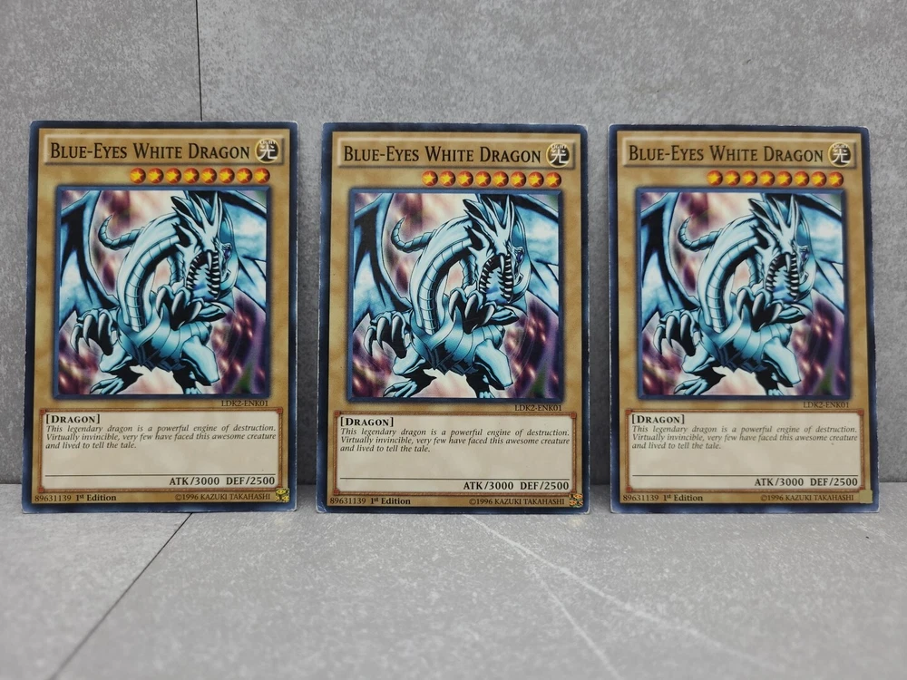 Blue-eyes White Dragon 1st Edition LDK2-ENK01 Konami 1996 Lot Of 3 in good condition with some wear. See pictures for condition. These are great pieces for the collection! Thanks for looking.