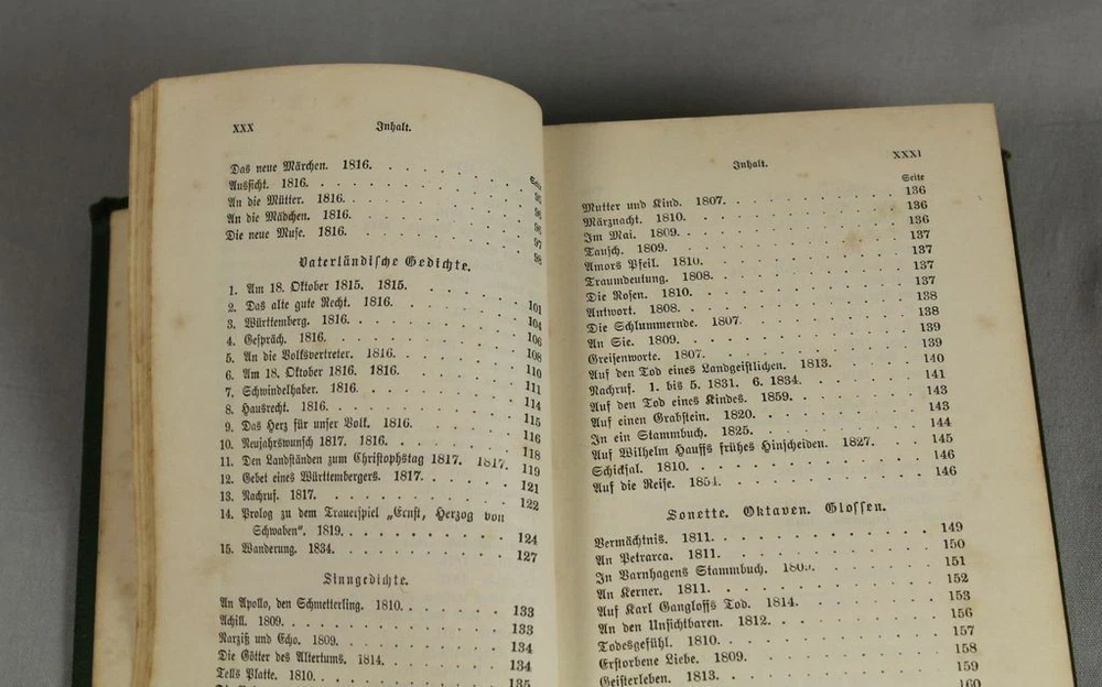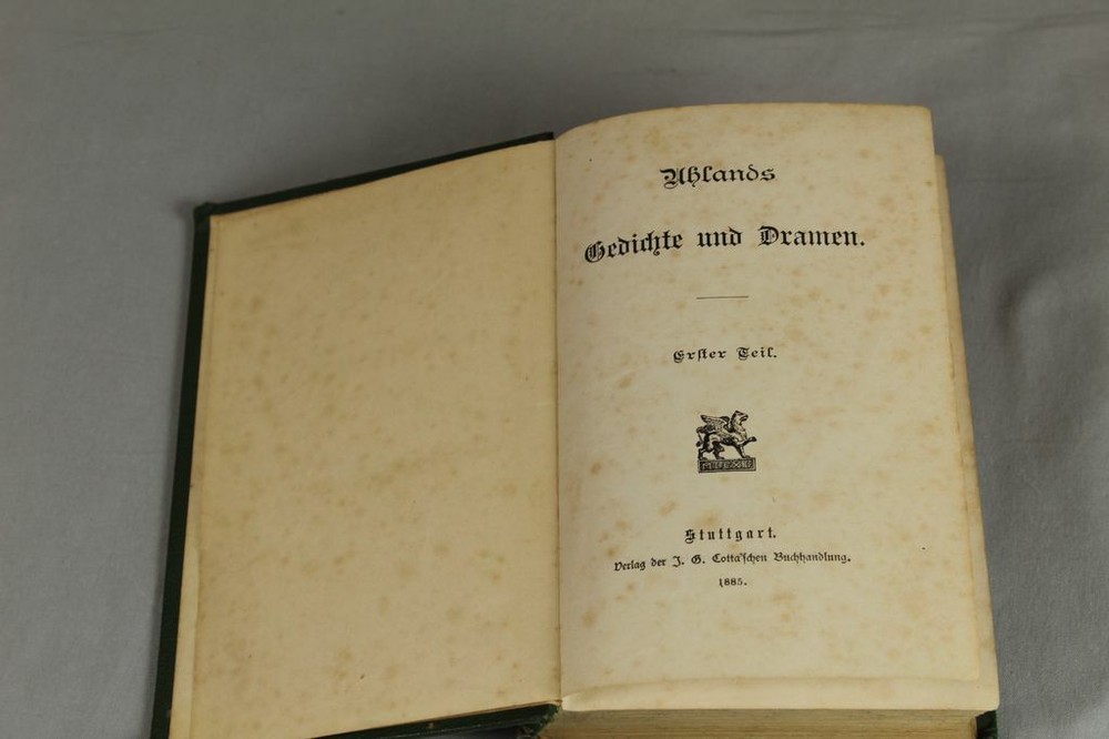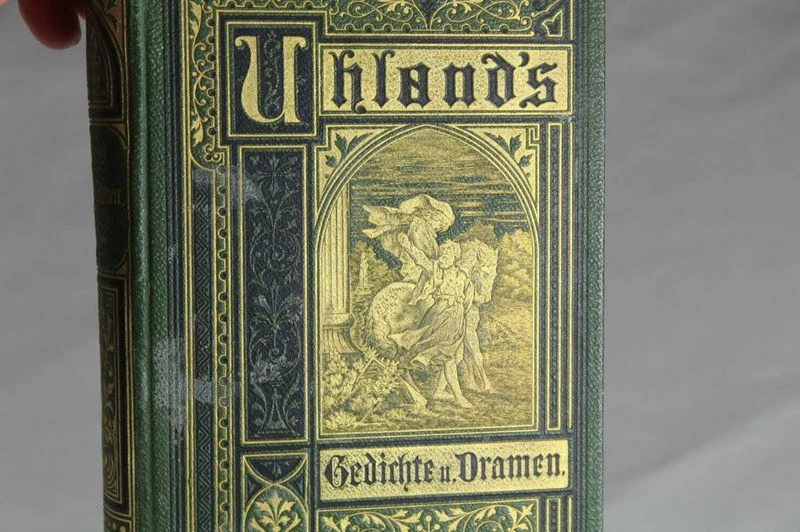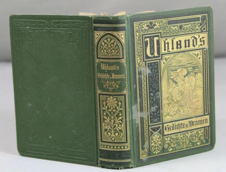 Book: Ludwig Uhland - Poems And Dramas - 3 Pieces IN One Band - 1885/S254 The description of this item has been automatically translated. If you have any questions, please feel free to contact us. Book: Ludwig UHLAND - Poems and Dramas - 3 parts in one volume - 1885 # Dissolution of an estate Uhland's poems and dramas 3 parts in one volume With a biographical introduction. Part 1 - Songs (220 pages) Part 2 - Poems (324 pages) Part 3 - Dramas (196 pages) Green leather strap, gold-embossed cover and spine. Cotta'schen Buchhandlung publishing house, Stuttgart 1885 Dimensions: (HxW) approx. 17 x 12 cm Weight: approx. 519 g Status: Age-related signs of wear and storage, the cover rubbed and stained, corners and edges bumped, paper darkened and partly with yellow stains, 2 names in the front endpaper. For more information on the condition and scope of delivery, see also pictures. I apologize for any light reflections. If anyone can say more about this article, I will be grateful for any information. DreamRobot Book: Ludwig UHLAND - Poems and Dramas - 3 parts in one volume - 1885 # Dissolution of an estate Uhland's poems and dramas 3 parts in one volume With a biographical introduction. Part 1 - Songs (220 pages) Part 2 - Poems (324 pages) Part 3 - Dramas (196 pages) Green leather strap, gold-embossed cover and spine. Cotta'schen Buchhandlung publishing house, Stuttgart 1885 Dimensions: (HxW) approx. 17 x 12 cm Weight: approx. 519 g Age-related signs of wear and storage, the cover rubbed and stained, corners and edges bumped, paper darkened and partly with yellow stains, 2 names in the front endpaper.For more information on the condition and scope of delivery, see also pictures. I apologize for any light reflections. If anyone can say more about this article, I will be grateful for any infor Marke nicht zutreffend Einband Leder Erscheinungsort Stuttgart EAN Nicht zutreffend Sprache Deutsch Autor Ludwig Uhland Thema Uhlands Gedichte und Dramen Original/Faksimile Original Genre Belletristik Erscheinungsjahr 1885 Verlag Cotta´sche Buchhandlung