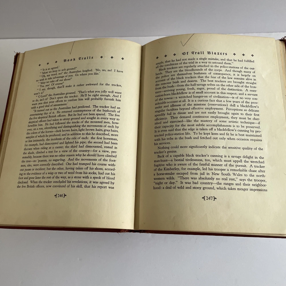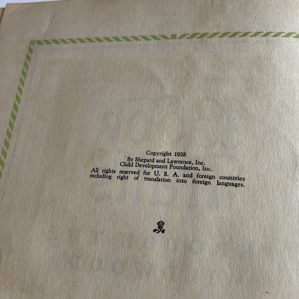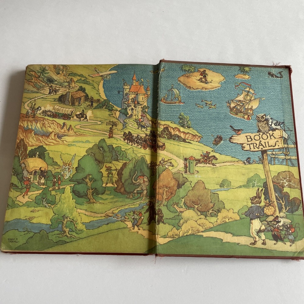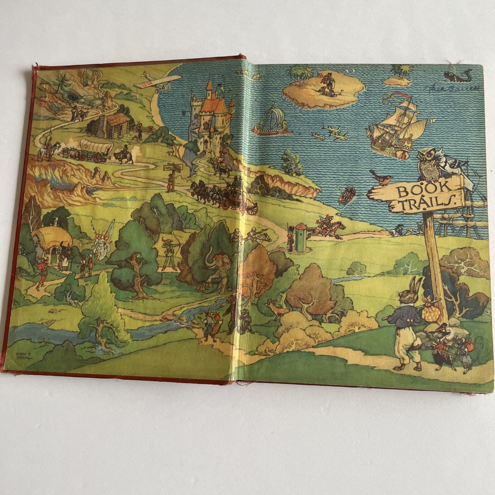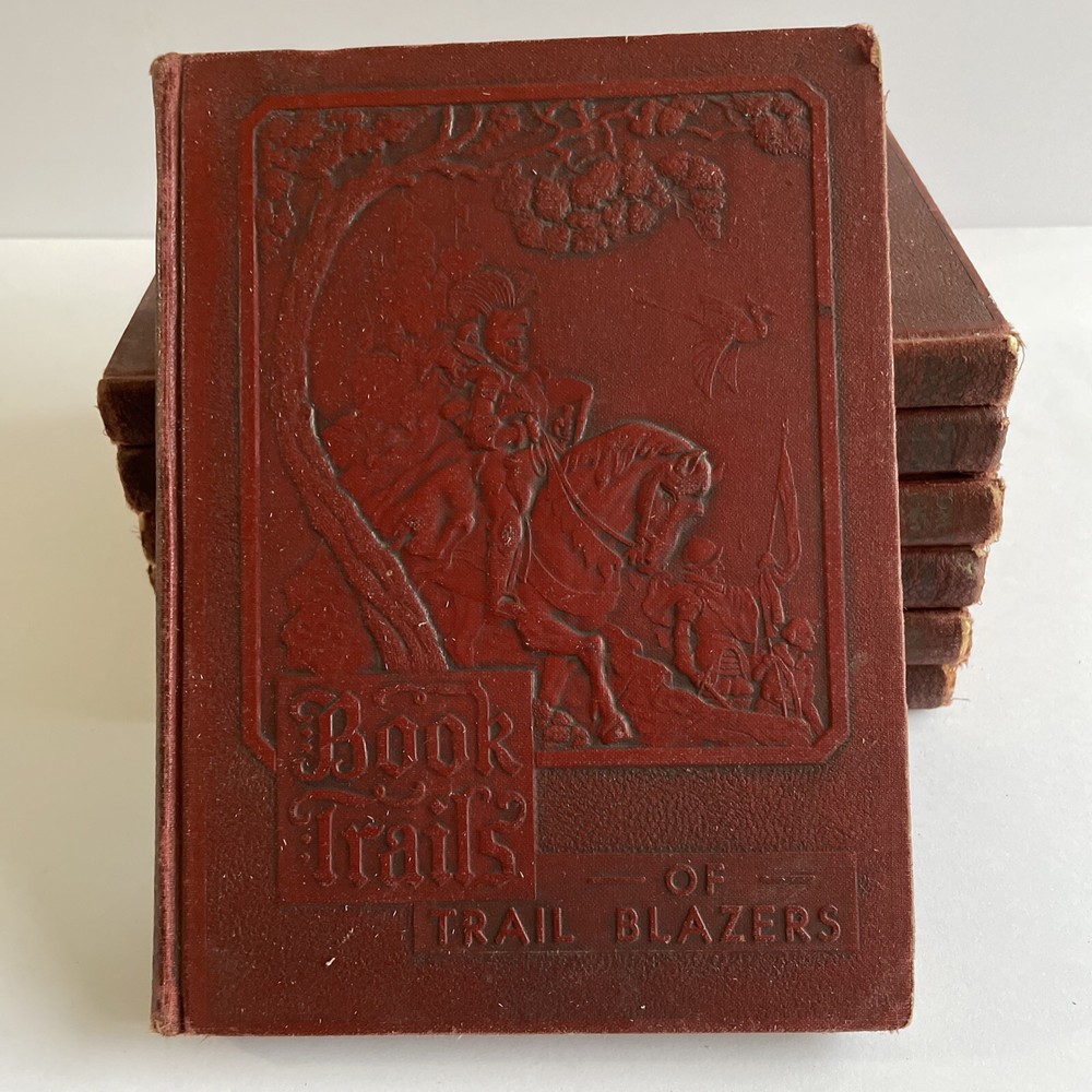 Book Trails 1928 First Edition Childrens Stories Vintage. By Shepard and Lawrence, Inc. Child Development Foundation, Inc. Printed in USA. Embossed leather cover. MISSING BABY FEET. Includes these 7: Trail Blazers, Enchanted Lands, Winding Westward, At the Crossroads, Highroad To Adventure, Turret Tops, and Through the Wildwood. Name on the first page.