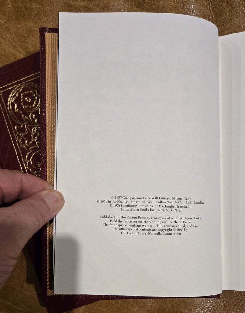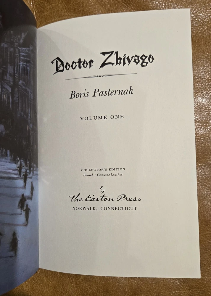 Boris Pasternak DR. DOCTOR ZHIVAGO Easton Press Norwalk, Connecticut Easton Press 1986 Both volumes beautiful. Accented in 22kt gold, printed on archival paper with gilded edges, smyth sewing & concealed muslin joints. Bound In full leather with hubbed spines. A Limited Edition