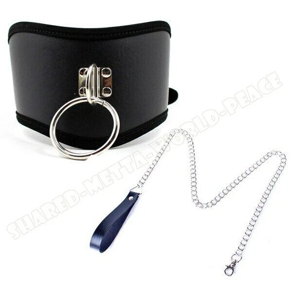 eBay eBay Product Description: Material :Pu leather Color:Black Package Includ: 1 pc Neck collar or 1 set( 1 pc Neck collar+1 pcs chain) Package: Discreet package , protect your privacy Feature: 100% brand new and high quality This PU Leather Neck Collars is designed for your of entertainment it is more comfortable and convenient to use. Neck collars is adjustable; it’s the ideal choice to meet different needs. The Strict Leather Posture Collar will help keep your neck in perfect form, with head and neck up. Made from high-quality leather, heavy-duty construction. It secures around the throat with dual buckles on adjustable straps, and a firm, padded shelf keeps chin up. 1 firm ring built in the middle of restraint collar,easy to use could be attached with rope,be pulled your slave go ahead