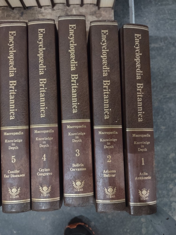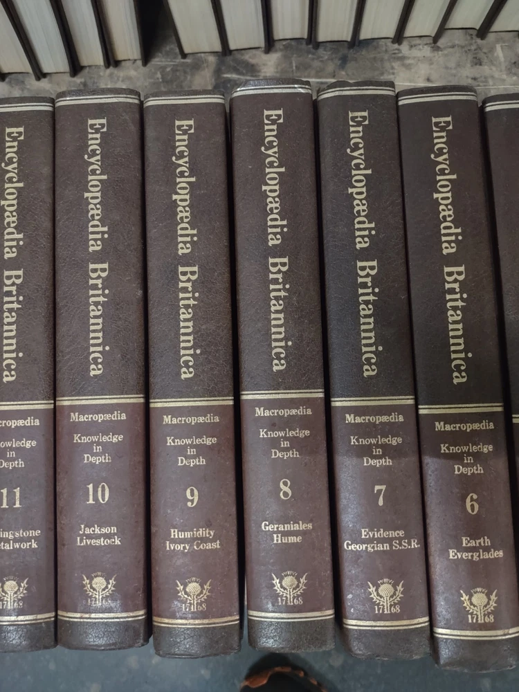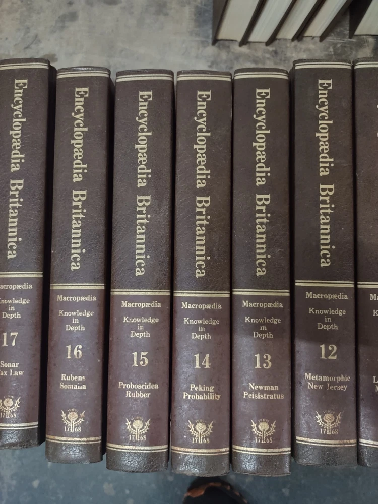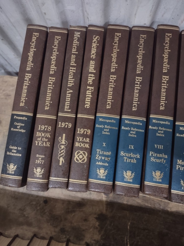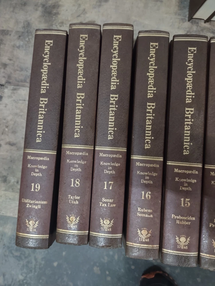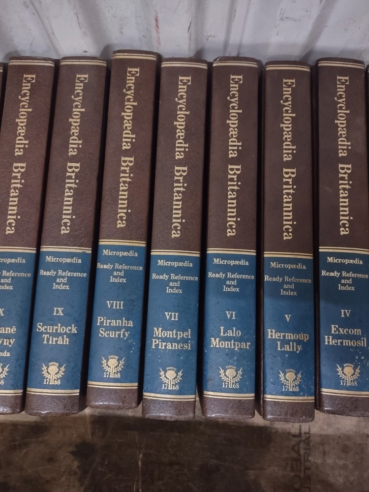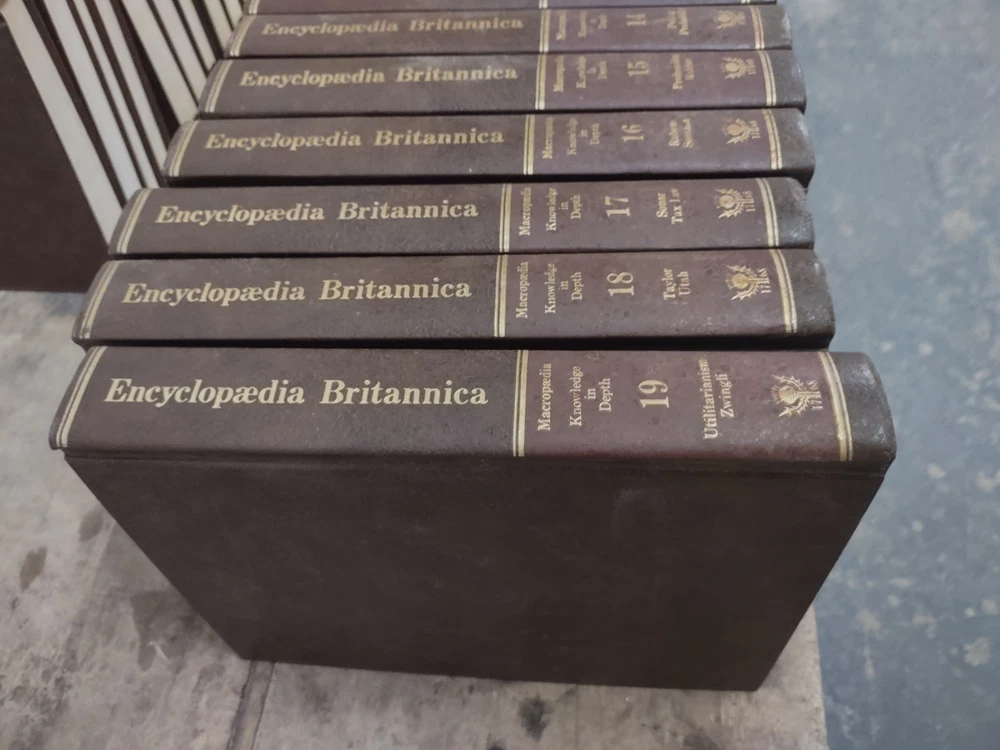 Explore the vast wealth of knowledge with the Britannica Encyclopedia Book Set, a 30-volume collection that stands as a beacon of learning from 1983. Published by Encyclopædia Britannica, Inc, and bound in elegant leather, this set is a testament to the enduring human quest for wisdom. The books are presented in English and come to you from Chicago, carrying the legacy of countless authors who have contributed to this encyclopedic treasure. Perfect for both collectors and scholars, this reference library spans a multitude of topics, making it an invaluable resource for anyone seeking to expand their understanding of the world. The set is not personalized and not signed, ensuring that its focus remains on the information within its pages – a comprehensive guide to the world's many subjects.