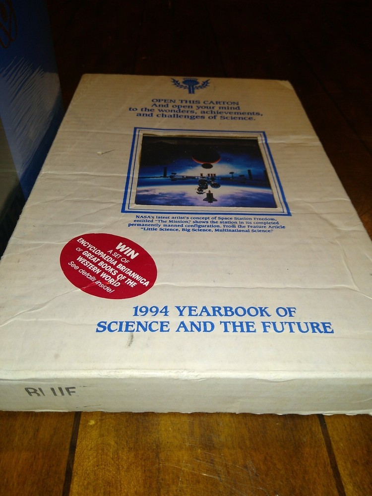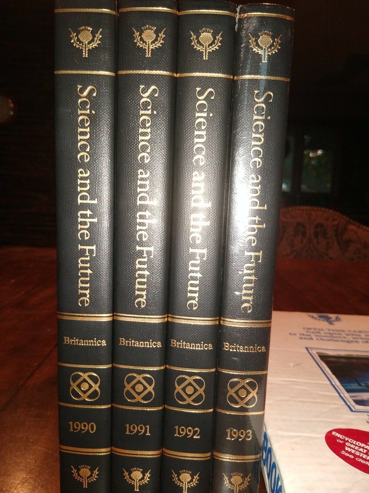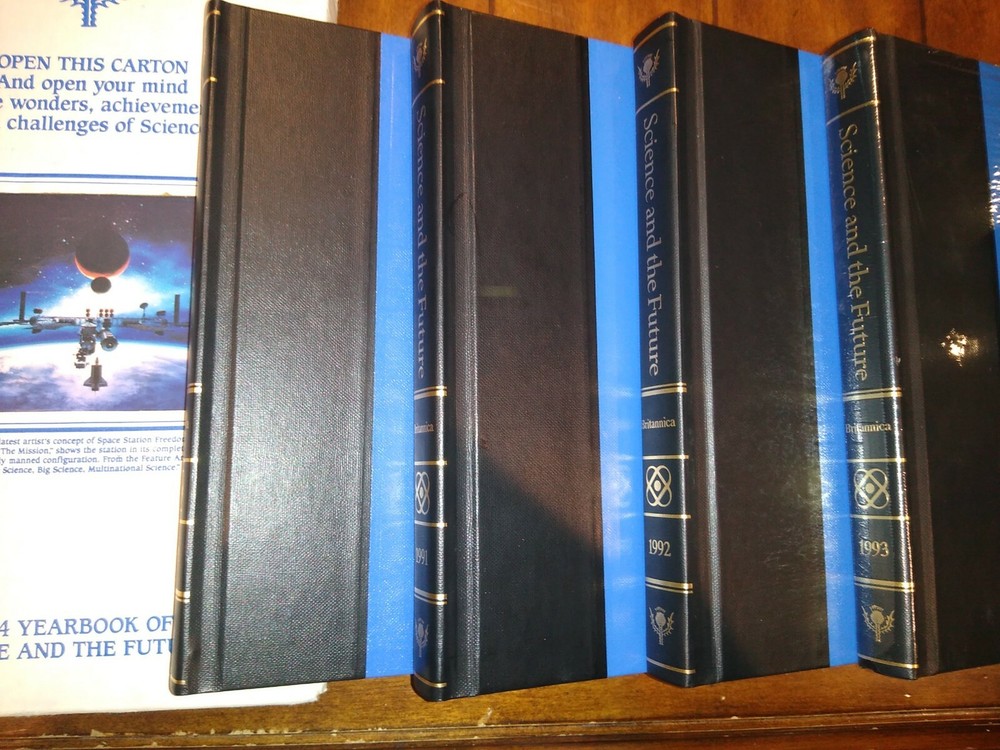 Britannica Science & The Future Yearbooks Book Set of 5 (1990-1994), 2 unopened. Shipped with USPS Media Mail.