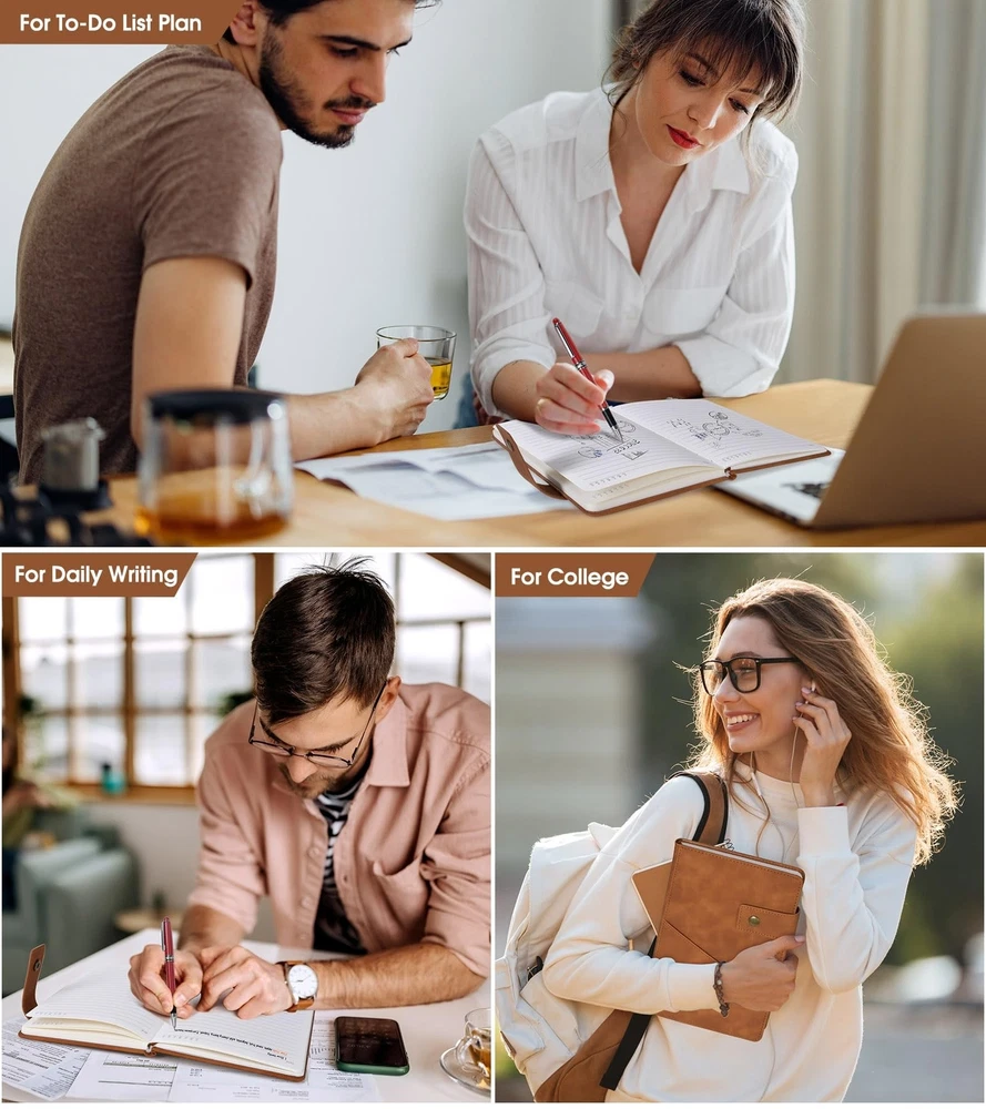 Brown A5 Lined Leather Journal Notebook,Personalized Hardcover Journal Set with Pen & Gift Box,100Pages 100gsm Thick Ruled Paper Daily Diary for Men Women School,Travel,Business,Work,Home Writing ✓ Free 60 Day Returns ✓ Free Express Shipping Description: Features: Value of Money Hardcover Journal Set- Classic brown ruled notebook, journals are elegant, quality crafted books available at a surprisingly competive price and quality. A huge choice for everyday use, provides plenty of space for notes, lists, musings, and more. And each notebook will give away a luxury metal penexquisite gift box packaging and bags,This is one of our best journal gifts. Premium Thick Paper- 5.9 X 8.4 inch Journal Notebook with 200 pages 100 gsm lined paper, thicker 30% than normal, this brown notebook is designed to avoid feathering and the paper is ink-proof, suit for most pens, but the wettest pen inks. Archival-quality pages made from acid-free paper-resists damage from light and air, the cream paper is easy on eyes.Let your creation more freedom on the wide ruled journal to write in. Soft Faux Leather Journal Notebook- This elegant Journal notebook has suede hardcover but feel soft in hand, just like a baby's skin. Fashion but durable cover adapts to the movements of body without damage. The notebook's hard cover protects the pages inside and doubles as a convenient writing surface. Great gift for any. Gusseted Design- Gusseted Pocket DESIGN and Cardboard Bound Cover,metal buckle helps keep notebook securely closed, making it easy to write in the notebook from just about anywhere. This notebook provide you a high quality writing experience.Expandable Gusseted pocket for stashing loose notes,business cards, receipts, mobile phone, or other small items. Great Use & Perfect Journal GiftsIdeal for all office,school and home use,including for taking notes and keeping work in order,as a diary or journal for brainstorming ideas,creative writing or just doodling and drawing to your hearts content.This personalized journal notebook is a great birthday,mothers day,fathers day,children's day,graduation,Christmas journal Gifts.It is an ideal gift for mom,dad, teachers,classmates,colleagues,wife,husband,friends,daughters,sons and granddaughter. Product Details: Brand: vfaejll Color: Brown with Gift Box Theme: Book Sheet Size: A5 Pages: 200 Pages Cover Material: Leather Style: Lined Journal Notebook Ruling Type: Ruled Special Feature: Soft cover Number of Items: 1 Manufacturer: vfaejll Brand: vfaejll Item Weight: 3.53 ounces Product Dimensions: 8.4 x 5.9 x 0.78 inches Color: Brown with Gift Box Cover Material: Leather Number of Items: 1 Size: A5 Ruling: Ruled Sheet Size: A5 Manufacturer Part Number: vfaejll155881 Date First Available: June 28, 2022