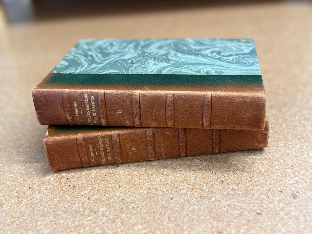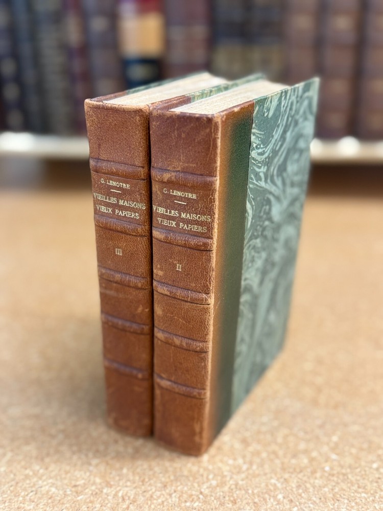 Good condition, brown 1/4 leather-bound antique 2 book set as shown in photos. Language is French. G. Lenotre - Vieilles Maisons Vieux Papiers (" Old Houses Old Papers") Vol II & III Set dimensions are approx 8"H x5.25"D x3"W. These antique leather books are a must-have for any collector or lover of vintage decor. The set consists of a foot of beautifully bound leather books, perfect for displaying on a bookshelf or coffee table. The unique binding style of the books adds an extra touch of elegance to any room. Each book in the set is crafted with the highest quality leather, ensuring durability and longevity. The intricate details and unique design of each book make this set a true treasure for any antique book enthusiast. Whether you're looking to add to your collection or simply looking for a stunning piece of decor, this antique leather book set is sure to impress. At Rarified Books we have cultivated sources for antique books over our many years in business. Our carefully curated sets of high-quality books offer a diverse range of literature, history, philosophy, and the arts, meticulously selected to enrich any interior. With publication dates spanning from 18 00 to 1920, each book in our collection is a stunning testament to a bygone era, showcasing unparalleled craftsmanship and an abundance of character. NB: Books are non-returnable, but we will be glad to send you more detailed photos before shipping. Please message us before purchase. ~~~~~~~~~~~~~~~~The Fine Print~~~~~~~~~~~~~~~~: At Rarified Books, we take pride in offering items of extraordinary quality, value and condition. We offer the finest in modern leather-bound books and more. Books are sourced from a wide variety of sources, and are carefully inspected. Other items are equally carefully sourced ... check out our other listings and see! All descriptions are to the best of our knowledge. Sales are made as-is and no warranty is offered as to authenticity or provenance. Title passes to the buyer upon shipment. All sales are final. Sales tax may apply which is collected automatically by eBay. Returns are not accepted except in rare circumstances upon agreement. Shipping is the responsibility of the buyer unless otherwise noted or agreed. Books are professionally wrapped and protected in bubble wrapping for shipping, with additional cushioning void filler in an appropriately sized carton or padded envelope. Most books will be shipped via USPS Media Mail with tracking or FedEx Home Delivery. International Shipping through eBay's Global Shipping Program only. International buyers are responsible for all local customs fees, taxes, and duties. These charges are not included in our shipping costs. We also buy books and are always open to purchasing excellent condition books from Easton Press, Franklin Library, Folio Society and similar as well as other rare and collectible books. See our website www.modernleatherbooks.com and let us know what you have. Thank you for considering our listing!