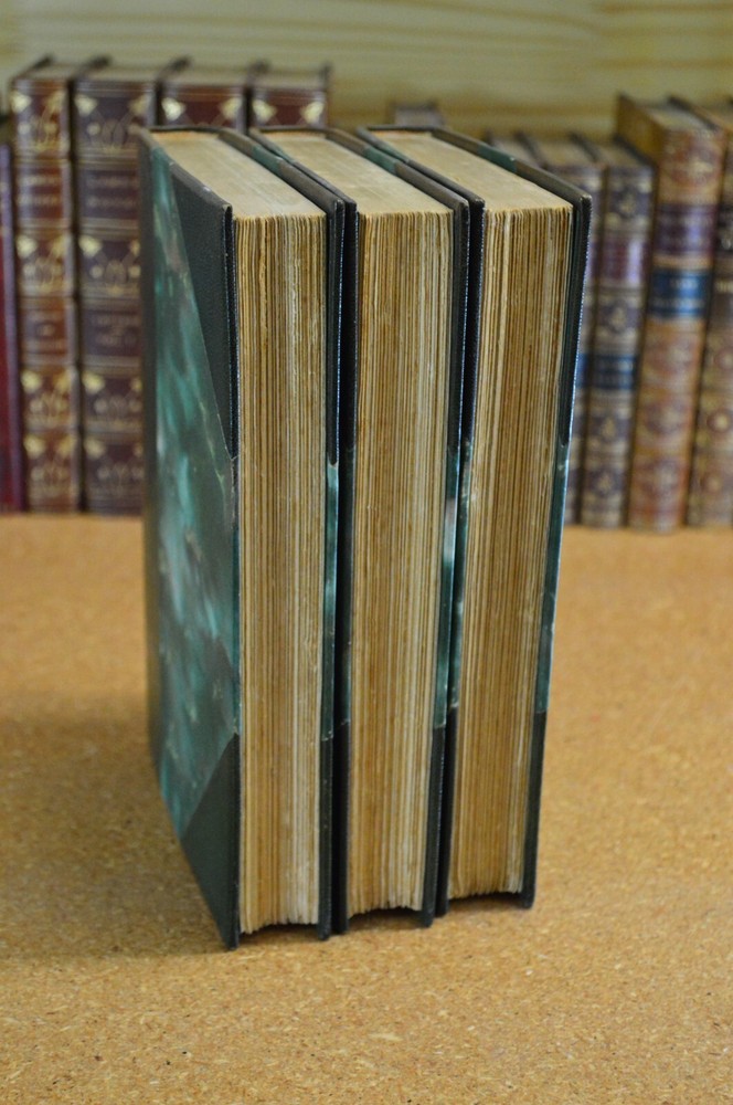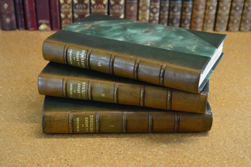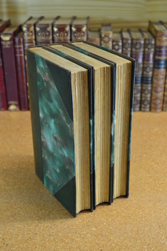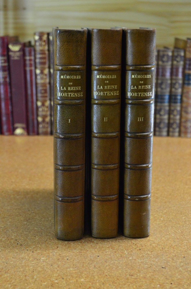 Beautiful Brown (faded from green) sumptuous leather-bound antique book set as shown in photos. Language is French - Memoires de La Reine Hortense Vol I, II, III. ( Memoirs of Queen Hortense). Matched set. Set dimensions are 9H x 6.25D x 4W. These antique leather books are a must-have for any collector or lover of vintage decor. The set consists of a foot of beautifully bound leather books, perfect for displaying on a bookshelf or coffee table. The unique binding style of the books adds an extra touch of elegance to any room. Each book in the set is crafted with the highest quality leather, ensuring durability and longevity. The intricate details and unique design of each book make this set a true treasure for any antique book enthusiast. Whether you're looking to add to your collection or simply looking for a stunning piece of decor, this antique leather book set is sure to impress. At Rarified Books we have cultivated sources for antique books over our many years in business. Our carefully curated sets of high-quality books offer a diverse range of literature, history, philosophy, and the arts, meticulously selected to enrich any interior. With publication dates spanning from 18 00 to 1920, each book in our collection is a stunning testament to a bygone era, showcasing unparalleled craftsmanship and an abundance of character. NB: Books are non-returnable, but we will be glad to send you more detailed photos before shipping. Please message us before purchase. ~~~~~~~~~~~~~~~~The Fine Print~~~~~~~~~~~~~~~~: At Rarified Books, we take pride in offering items of extraordinary quality, value and condition. We offer the finest in modern leather-bound books and more. Books are sourced from a wide variety of sources, and are carefully inspected. Other items are equally carefully sourced ... check out our other listings and see! All descriptions are to the best of our knowledge. Sales are made as-is and no warranty is offered as to authenticity or provenance. Title passes to the buyer upon shipment. All sales are final. Sales tax may apply which is collected automatically by eBay. Returns are not accepted except in rare circumstances upon agreement. Shipping is the responsibility of the buyer unless otherwise noted or agreed. Books are professionally wrapped and protected in bubble wrapping for shipping, with additional cushioning void filler in an appropriately sized carton or padded envelope. Most books will be shipped via USPS Media Mail with tracking or FedEx Home Delivery. International Shipping through eBay's Global Shipping Program only. International buyers are responsible for all local customs fees, taxes, and duties. These charges are not included in our shipping costs. We also buy books and are always open to purchasing excellent condition books from Easton Press, Franklin Library, Folio Society and similar as well as other rare and collectible books. See our website www.modernleatherbooks.com and let us know what you have. Thank you for considering our listing!