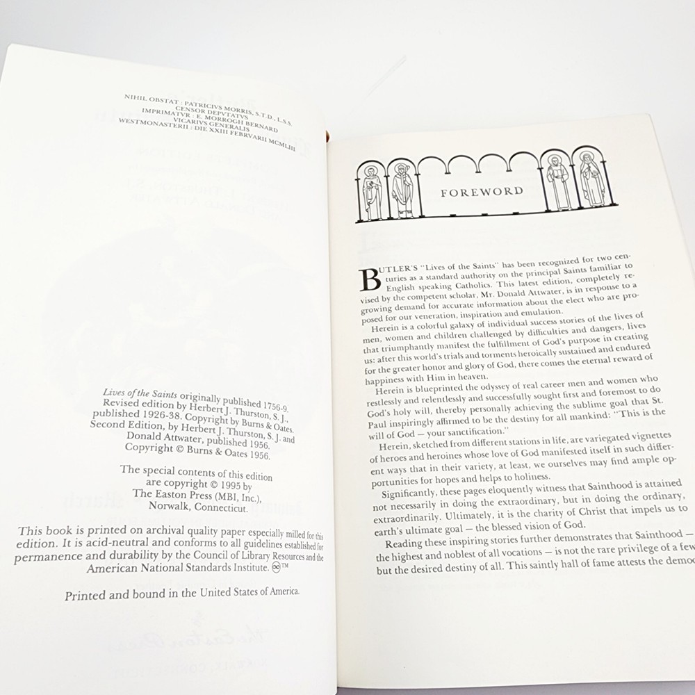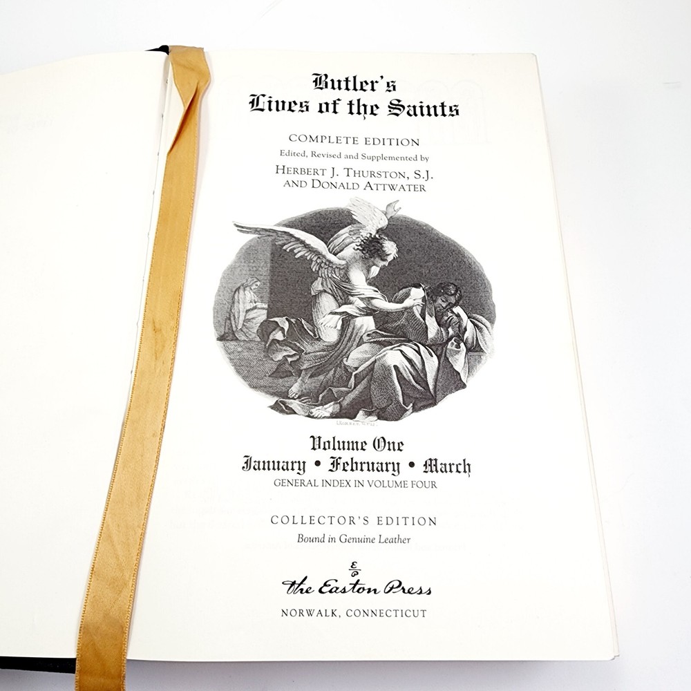 Butler’s Lives of the Saints (Four Volume Set) Thurston, Herbert J. ; Donald Attwater (editors) The Easton Press, 1995. Complete four volume set. Bound in rich full leather with extensive gilt decoration on the spine and both boards, raised bands on the spine, archival-quality paper, and a satin ribbon bookmarks . 8vo – 7" x 9 1/2". 720, 692, 705, 707 pp. Good to fair condition. Rubbing to the exterior gilt edges and to the tips of the boards. Minor soiling, creases and small tears to some of the inside pages. Volume IV contains highlighting on pages 406 and 407. The rest of the volumes appear unmarked. The bindings are solid. Be sure to take a look at my store for similar items. Please feel free to ask any questions. Payment is requested as soon as possible. Shipment is made when payment has cleared. We will gladly combine shipping on multiple items to save on shipping costs. 100% Satisfaction Guaranteed - If you are not satisfied with your purchase, please contact us within 30 days of receiving the item. We consider a sale final after 30 days. All items must be returned with their original materials to receive a refund. Shipping is non-refundable.