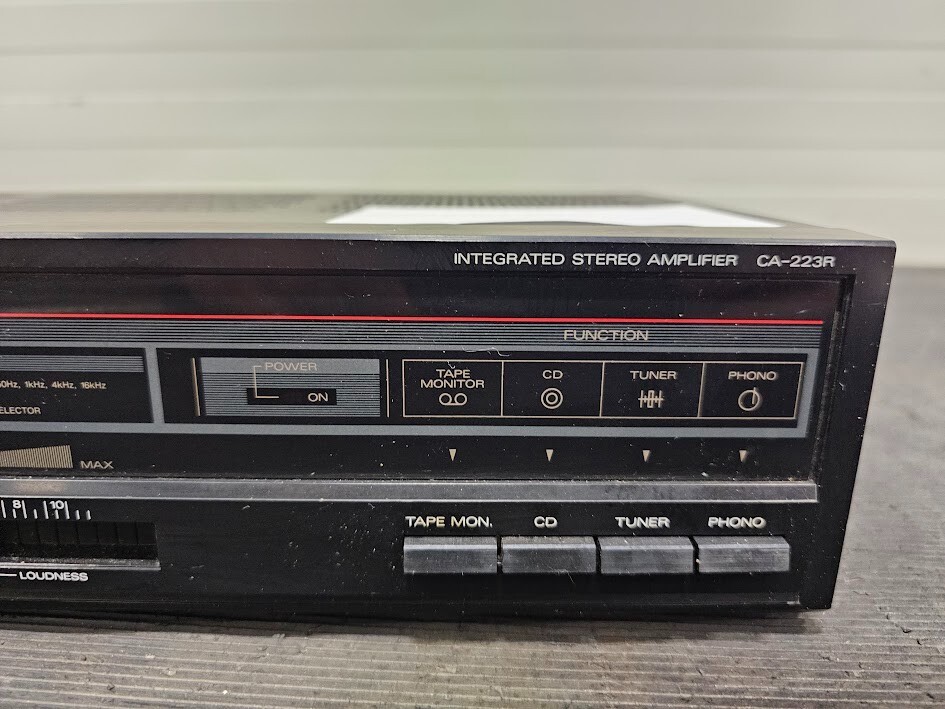 Unlock powerful vintage sound performance with the CA-223R Integrated Stereo Amplifier , a versatile piece of audio equipment designed to elevate any home hi-fi system. With its clean front panel and functional input selector for Tape Monitor, CD, Tuner, and Phono , this unit is tailored for vinyl lovers, CD audiophiles, and vintage radio enthusiasts alike. Its classic analog interface makes it intuitive to operate, and it fits beautifully into both retro and modern stereo setups. This unit is used and tested in working condition , and it comes with a power cable included —ready to plug and play. Whether you're restoring a classic stereo setup or expanding your collection with a reliable integrated amp, the CA-223R delivers balanced performance, deep bass, and compatibility with a wide array of input sources. Perfect for anyone who values rich, analog sound with tactile control and timeless appeal. Features: Model: CA-223R Type: Integrated Stereo Amplifier Functions: Tape Monitor, CD, Tuner, Phono Classic Loudness and Tone Control Options Front Panel Selector Switches for Seamless Input Switching Included: Power Cable Condition: Used – Fully Working Item Specifics for eBay.com: Brand: Not specified (Generic/Unbranded based on visible label) Model: CA-223R Color: Black Power Source: AC – Power Cord Included Audio Outputs: Standard Speaker Terminals, Headphones (check back panel for full output types) Condition: Used – Working Country/Region of Manufacture: Unknown FAQs: Q: Does it include original packaging or remote control? A: No, it only comes with the power cable. Q: Can I use this with a turntable and CD player? A: Yes, it has separate inputs for CD, Tuner, Phono, and Tape Monitor. Q: Are there any cosmetic issues or scratches? A: Expect normal signs of wear for a vintage unit, but no damage affecting functionality. All items will usually be shipped within 3 business days of receiving cleared payment (excludes weekends and holidays). If you have some questions, feel free to ask and if you are not satisfied with your purchase before opening a case on Ebay, please contact us and we will try to resolve your issues as quickly as possible. Multiple items on one of the listings? If you see that we have multiple quantities of the same item in a photo, please note that it is representative of what you will receive. There may be slight variations in condition between the pictured item and the one you receive. For example, the scratches and dents may differ. Return Notes: 1. For items listed as "working" condition: Returns due to "changed mind," "doesn't fit," or other buyers remorse reasons are accepted. 2. For items received damaged or not as described: If the item arrives damaged or does not match the listing description, we will cover the return shipping costs. Supporting photos or video evidence must be provided before the return is approved. Please contact us immediately with the details and your order number to resolve the issue efficiently. 3. For items listed as "For parts or not working": Returns are not accepted, as these items are explicitly described as non-functional or for repair purposes only. Buyers acknowledge this condition at the time of purchase. 4. General return guidelines: Items must be returned in the same condition as received, including all original packaging and accessories (if applicable). Returns must be initiated through the eBay Returns Center and include a valid return reason. For corporate or small business customers: If you require an invoice for your purchase, please specify this in the buyer's notes section or reach out to us.