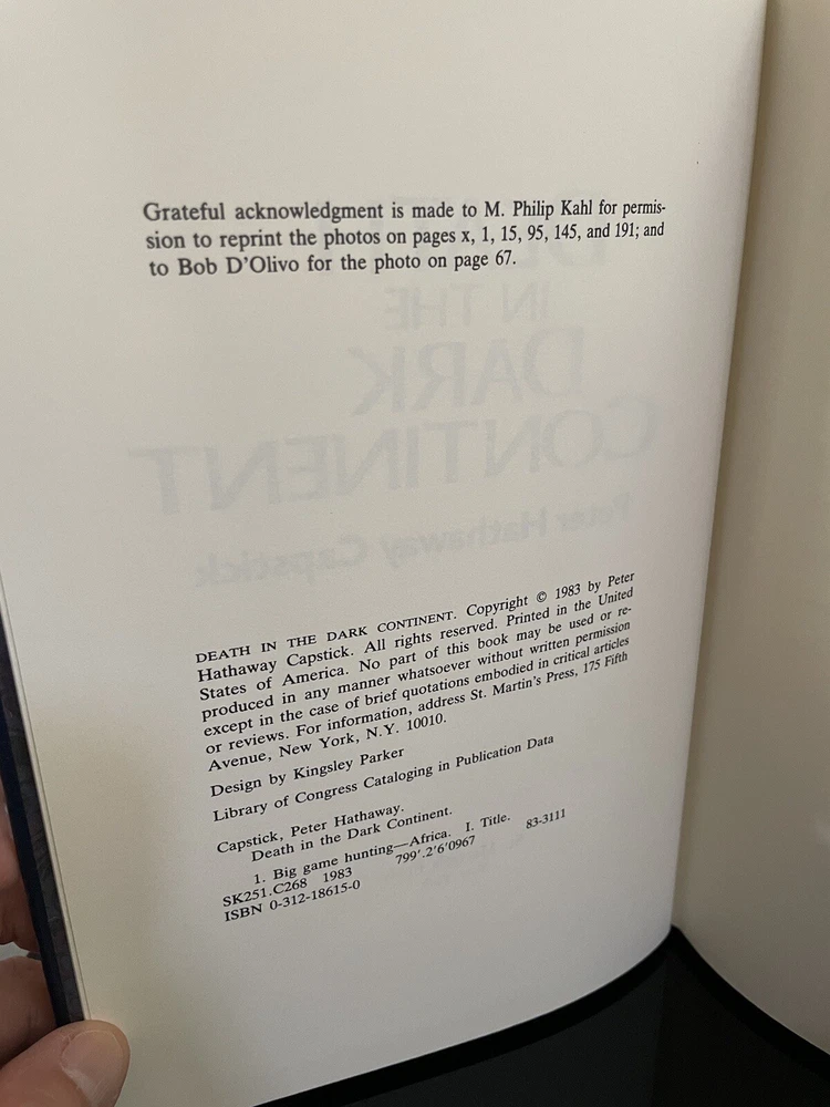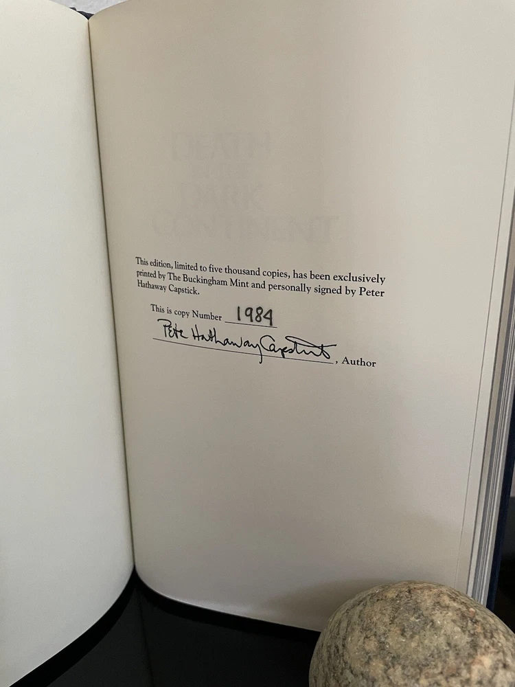 The Capstick Collector's Library Special Edition by Peter Capstick Full set of hunting books, published by St. Martin's Press. Safari Club International Silver Anniversary presentation Pre-owned in excellent condition and very well kept. Blue pebbled leather boards, silver embossed end pages, decorative pastedowns and end papers, very luxurious presentation. 10 volumes. All volumes are numbered 1984 and SIGNED by the author, Peter Capstick . Titles Included- Sands of Silence Maneaters Peter Capstick's Africa Death in the Silent Places Death in the Dark Continent Death in the Lonely Land Death in the Long Grass Safari: The Last Adventure Last Horizons The Last Ivory Hunters Most books show no wear. There is a small spot of color loss on the spine of The Last Ivory Hunters . A couple of the books have a small imperfection (rubbing) to a spot on the page ends. See pictures. The set features nice details such as raised bands on the spines and silk blue ribbon bookmarks present on all volumes. This is an INCREDIBLE SET. Please message me if you have questions . I WILL PACKAGE THIS EXTREMELY CAREFULLY TO ENSURE SAFE DELIVERY AND A SIGNATURE WILL BE REQUIRED FOR DELIVERY. Please see all pictures, as they are part of the description. More hunting and firearms-related books available. Please see my other items up for sale! Literary fiction, science fiction/fantasy, history, technical books, art books etc. available. I'm eager to help you find your next read or collectible. If you have questions about this item don't hesitate to ask. Thanks for looking! Returns accepted. Buyer must pay return shipping and money will be refunded upon receipt of undamaged item.