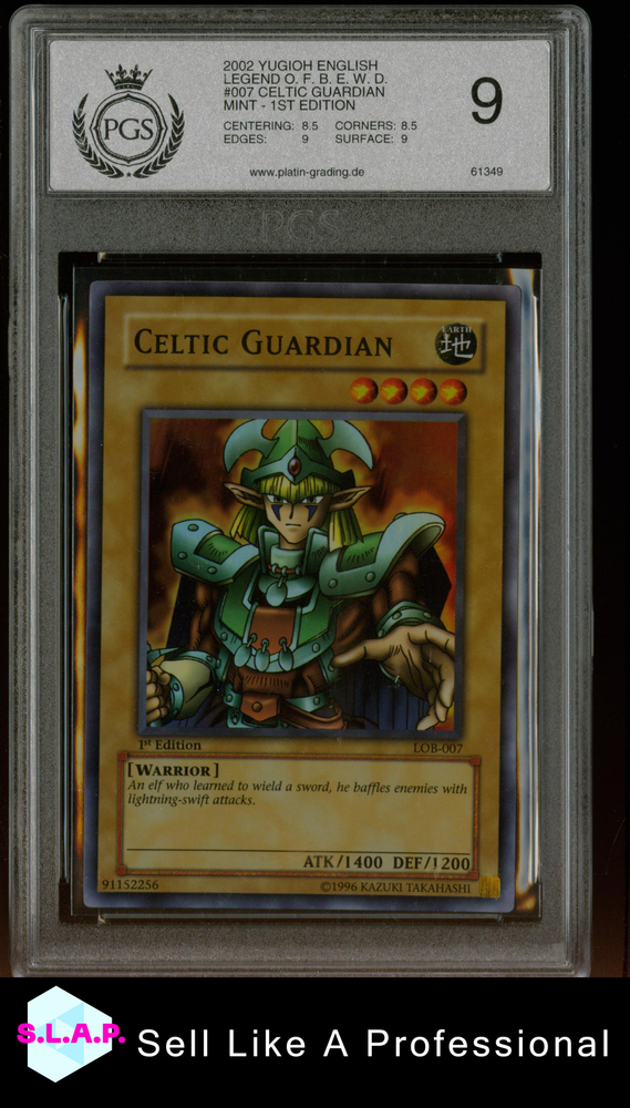 This Celtic Guardian Yu-Gi-Oh! card is a must-have for any serious collector—PSA 9 graded, pristine condition, and a rare piece from Legend of Blue Eyes White Dragon. SLAP offers top-tier service, secure shipping, and unbeatable authenticity. A flawless addition to your deck or display!