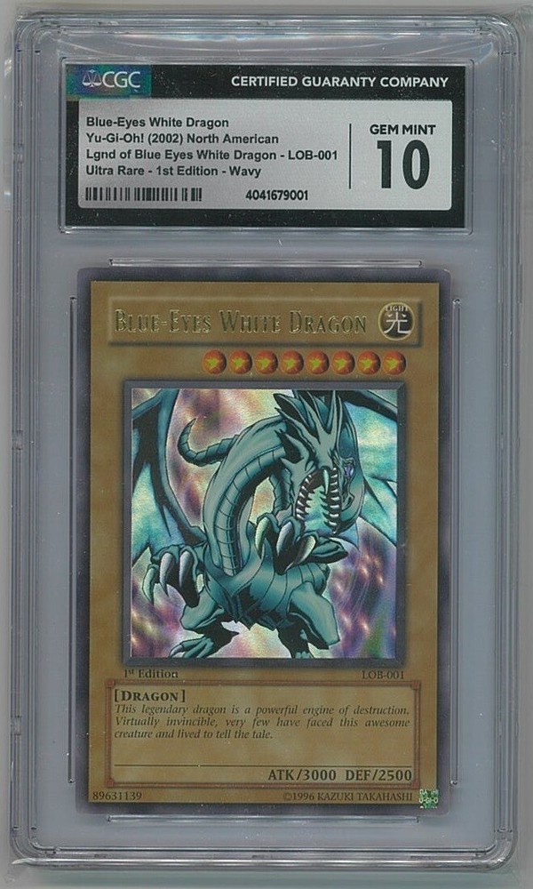 Please read through the entire listing thoroughly including the shipping and payments tab and note the shipping costs, delivery estimates, applicable sales tax, etc. By bidding/Buy It Now you are entering into a legally binding contract and are agreeing to all terms and conditions. If you disagree with any part of our listing please do not bid/buy. This is the real deal. A North American English Legend of Blue Eyes White Dragon LOB-001 1st edition Blue Eyes White Dragon. It is CGC graded 10 (Gem Mint) with an error label. The label says it's wavy, but the card is actually glossy. Check my feedback and buy with confidence. Free shipping via USPS Priority Mail with Signature Confirmation. Please make sure your shipping address is correct before sending payment. We will only ship to the address that is associated with the PayPal payment. Sales tax will be added where required by law. Shipping and delivery: Shipping: We ship within 1 business day. Business days are Monday through Friday, not including postal holidays. Delivery: Delivery times are estimated based on how far you are from us (California) and can vary depending on weather conditions, high volume holiday shipping, etc.