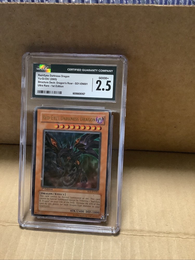 This CGC 2.5- Red-Eyes Black Dragon card is a must-have for any serious Yu-Gi-Oh! TCG collector. With its Japanese card size and holo finish, it's sure to be a standout addition to your collection. Featuring exclusive, collectors edition, 1st edition, and chase features, this Ghost Rare card is a rare find that any fan of the game would love to add to their collection. The card is made from high-quality card stock material and is suitable for players aged 4+. It depicts some of the most iconic characters from the game, including the Dark Magician, Yami Yugi, Seto Kaiba, Blue-Eyes White Dragon, Joey Wheeler, and Yugi Muto. The card is perfect for anyone who loves the game and is looking for a unique and rare addition to their collection.