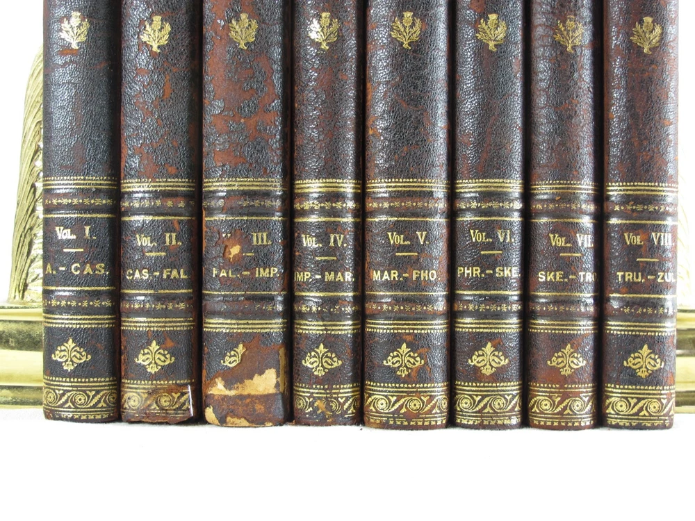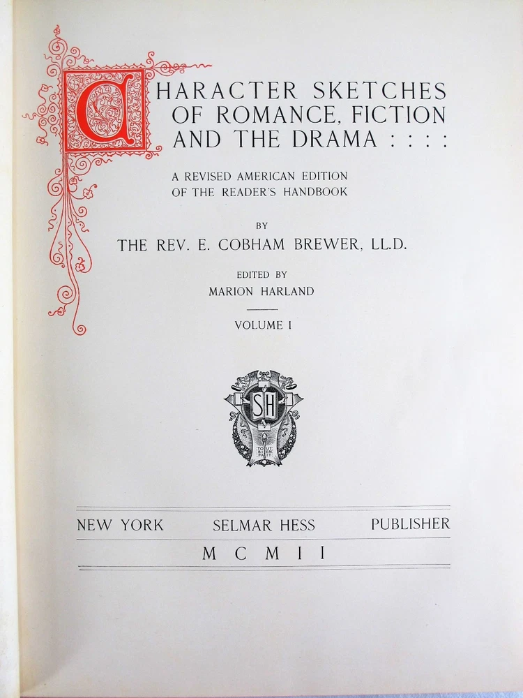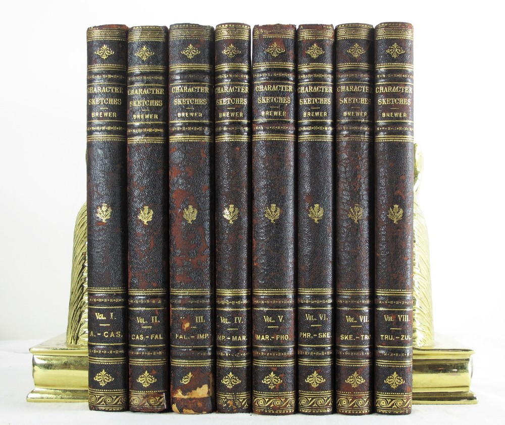 WELCOME TO MY AUCTION YOU ARE VIEWING Character Sketches of Romance, Fiction and The Drama by T he Rev. E. Cobham Brewer E dited by M arion Harland S elmar Hess N ew York 1902 Complete in 8 Volumes **More Pictures Below** Item Description: Character Sketches of Romance, Fiction and The Drama by The Rev. E. Cobham Brewer. Selmar Hess Publication, New York, 1902. Complete 8 volume set. A revised American edition of The Readers Handbook. Profusely illustrated by Gustave Dore, Howard Pyle, Millais, Frederick Barnard, E. A. Abbey, William Morris and many other fine artists. Hardcover brown 3/4 leather over pebbled boards. Gilt lettering to the covers and spines. Marbled endpapers. Plates have captioned tissue guards. Total of 340 plates, 33 photogravures, 307 illustrations. 9 x 12" tall. Condition: Very Good with rubbing/chipping to extremities. Binding and hinges are solid and tight. Internally excellent. The pages are clean and bright. There is no writing or markings, no torn or missing pages. An excellent addition to any library or collection. Beautiful for display in a library or bookcase. " The object of this Handbook is to supply readers and speakers with a lucid, but very brief account of such names as are used in allusions and references, whether by poets or prose writers; — to furnish those who consult it with the plot of popular dramas, the story of epic poems, and the outline of well-known tales. The number of dramatic plots sketched out is many hundreds. Another striking and interesting feature of the book is the revelation of the source from which dramatists and romancers have derived their stories, and the strange repetitions of historic incidents. It has been borne in mind throughout that it is not enough to state a fact. It must be stated attractively, and the characters described must be drawn characteristically if the reader is to appreciate it, and feel an interest in what he reads." **************** Buy with confidence... Fast Shipping--Includes Free Delivery Confirmation and Insurance. We have 18 years experience selling on Ebay. We maintain 100% Feedback. Please Check out my other items ! Be sure to add me to your favorites list ! Condition glossary: MINT - as new FINE - clean and with no wear but not as crisp as mint NEAR FINE - clean with only minimal shelf wear - no writing or tears VERY GOOD - clean with light shelf wear, possible owner's name, any marks or tears are disclosed GOOD - worn edges and corners, possible smudges or markings inside, edge tears, FAIR - more wear than "good", not attractive at all but still solid enough to read EX-LIBRARY - Any book listed as ex-lib may contain the following flaws: front free endpaper removed, library card pocket, jacket glued to the endpapers, tape and sticker residue, other library notations, discard stamps, etc. We Ship: Worldwide. We Offer: USPS Domestic and International Shipping We Ship 5 Days a Week. Monday-Friday Free Delivery Confirmation--Confirmation Number will be automatically emailed to you as soon as your shipping label is printed. Cross-border buyers are responsible for any customs, duties, etc. imposed by the buyer's home country. RETURNS : Returns are accepted. While every effort is made to accurately describe every item minor flaws may not always be noted. Please review the description and condition of an item prior to bidding. If you have any questions please do not hesitate to Email us. REFUNDS: You may return your item for a full refund within 30 days. You are required to ship the item back with insurance and tracking at your own expense. Refunds will be issued in the form in which item was paid. We at Lorikayltd strive for 5 Stars and 100% Feedback. No sale is final until you are satisfied with your purchase. We know you have many choices buying online--and we appreciate your business Auction Template Design © In My Cedar Chest - Unauthorized Duplication Prohibited.