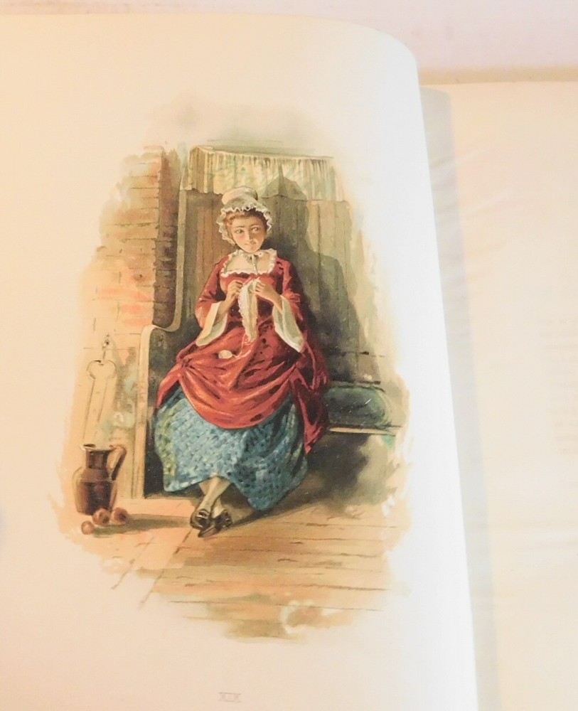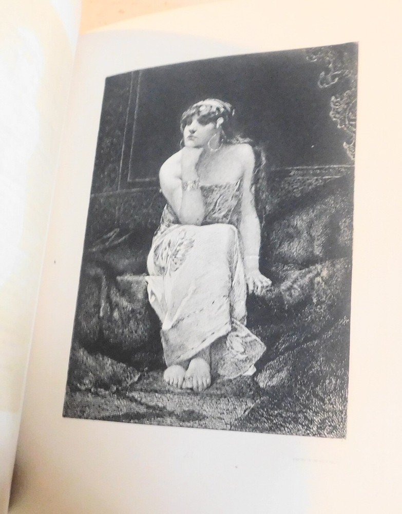 ( Dore, Gustave; Landseer, Sir Edwin; Hunt, Holman; Leighton, Sir Frederick; Abbey, E.A.; Moreau, G.; et al). Brewer LL.D., Rev. E. Cobham; Harland, Marion, editor. CHARACTER SKETCHES OF ROMANCE, FICTION AND THE DRAMA. A Revised American Edition of the Reader's Handbook By The Rev. E. Cobham Brewer, LL.D. Edited by Marion Harland. (4 Volumes, Complete Set). New York: Selmar Hess, 1892-1896. Quarto, 11-1/2 inches high by 9 inches wide. Four hardcover volumes, bound in pictorial olive green cloth with gilt decorations and an art nouveau illustration stamped on the front covers, with moire pastedowns and endpapers. Titled in gilt on the spines. All edges are gilt. The corners and head & tail of the spines are lightly bumped and the bottom edges of the covers are slightly rubbed. Volume 1 (1892): viii & 408 pages. Volume 2 (1896): vi & 408 pages. Volume 3: (1896): vi & 408 pages. Volume 4 (1892): vi & 384 pages. Each volume is illustrated with a color frontispiece and 84 plates with printed tissue guards, a total of 340 plates in all including works by Gustave Dore, Sir Edwin Landseer, Holman Hunt, Sir Frederick Leighton, E.A. Abbey, and G. Moreau. The front hinge of the second volume is cracked opposite the front blank leaf. An attractive set. Volume 4 contains an "English and American bibliography" pages 285-336, and "Authors and dates of dramas and operas" pages 342-384. TERMS: Shipping charges are calculated based on the total packed weight of this item. New York State residents will be assessed and charged the relevant sales tax. All items are guaranteed authentic and as described. Be sure to add me to your favorites list ! Check out my other items !