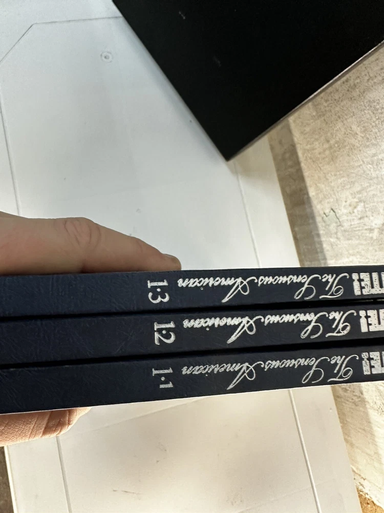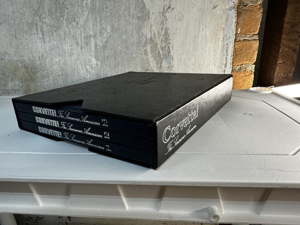 This collector's edition box set of "Corvette The Sensuous American" is a must-have for any automobile enthusiast. Published in 1978 by Michael Bruce Associates, Inc., it includes volumes 1-3 of the series, all in near fine condition. The set also comes with a poster featuring a stunning image of a classic Corvette. This hardcover book set is bound in faux leather and contains beautiful illustrations that transport the reader to the era of 1970s America. Intended for adults and vintage in its publication year, this book is a perfect addition to any transportation or automotive collection. Don't miss your chance to own this piece of history! Missing 1 poster Does have some damage to outside box as seen in pics