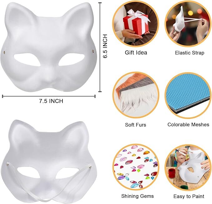 Cat Fox Mask 3PCS with Furs Eye Meshes and Gem Stickers, Therian Dress Up... 【Paper Material】:This cat therian mask is made of paper material, it is lightweight and comfortable but strong enough to wear for extended periods. The blank white surface allows you to create the unique mask with your own style! 【DIY Fun with Accessories】The package includes 3 blank masks, 3 furs (White, gray, coral), 8 eye meshes, 1 gem sticker pack, more convenient for you to make masks with more diverse styles. Pigment and Glue not included. 【Holiday Party Cosplay Masks】Take it and have fun with your friends, nightclubs, prom, bar parties, bachelorette parties, Halloween parties, jungle animal parties, games, stage shows, and photo props! 【Creativity and Practicality】The mask measures approximately 7.5x 6.5 x 3.05 inches, fits most adults and children! This is a great interactive activity between parents and children or friends because the mask production process is full of fun. 【Gift Idea】A gift choice for your family, friends or colleagues! Share it with them and let’s look forward to seeing everyone's different faces at parties and gathering! Your satisfaction is our top priority. Contact us with any questions or concerns. Sheets to make prepping, cooking and cleanup easier—and more fun! Shipping We offer FREE shipping on all orders! We ship within Three business days of payment, usually sooner. We use a selection of shipping services such as UPS, FedEx, USPS etc. We only ship to the lower 48 states, no APO/FPO addresses or PO Boxes allowed. Local pickups and combined shipping options are not provided at this time. Return You can return a product for up to 30 days from the date you purchased it. Any product you return must be in the same condition you received it and in the original packaging. Please keep the receipt. Customer satisfaction is very important to us. If you have any problem with your order, please contact us and we will do our best to make you satisfied. Contact Us If you have any queries, please contact us via ebay. We usually respond within 24 hours on weekdays. Please visit our eBay store to check out other items for sale! Thank you for shopping at our store.