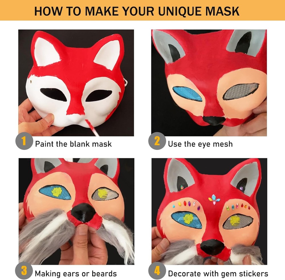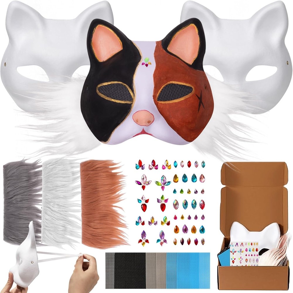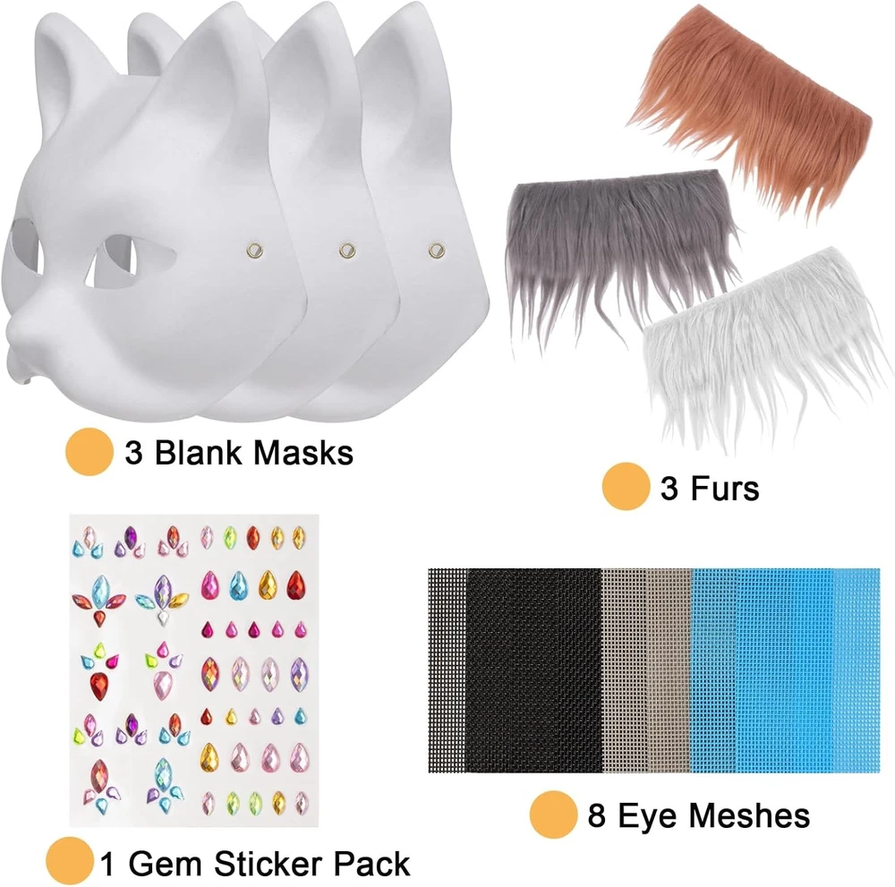 Cat Fox Mask 3PCS with Furs Eye Meshes and Gem Stickers, Therian Dress Up Masks to Paint, Animal Mask Arts Crafts Kit, Costume Masks for Halloween Masquerade Cosplay Party Interaction Product Details Product Dimensions : 7.5 x 6.5 x 3.15 inches; 8.47 ounces Department : Unisex-Adult Manufacturer : OPPKIE