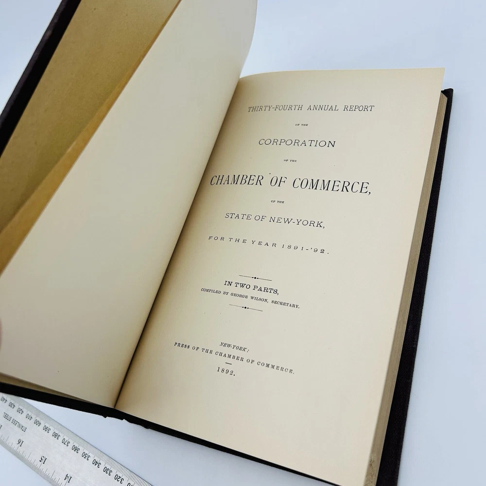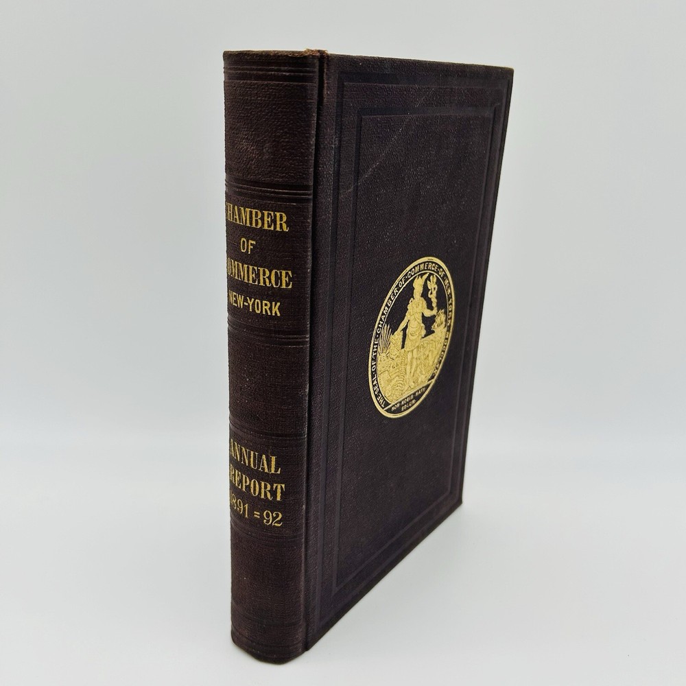 This is an amazing hardcover book titled "Chamber of Commerce New York Annual Report 1891-1892". It is a first edition luxury edition with a leather-bound cover. The book is a non-fiction narrative that provides valuable insights into the business software, business ethics, small business, setting up business, and business analysis topics. The book is in its original English language and was published in 1892 by the Press of the Chamber of Commerce. It is an ideal addition to any adult's book collection. The book is not personalized and does not come with an inscription. It is a vintage item that is perfect for collectors.