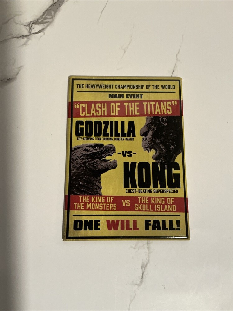 This rare and highly sought-after fridge magnet features the iconic battle between Godzilla and King Kong. With its yellow color and movie poster style, this fridge magnet is a must-have for any fan of the Godzilla vs King Kong franchise.