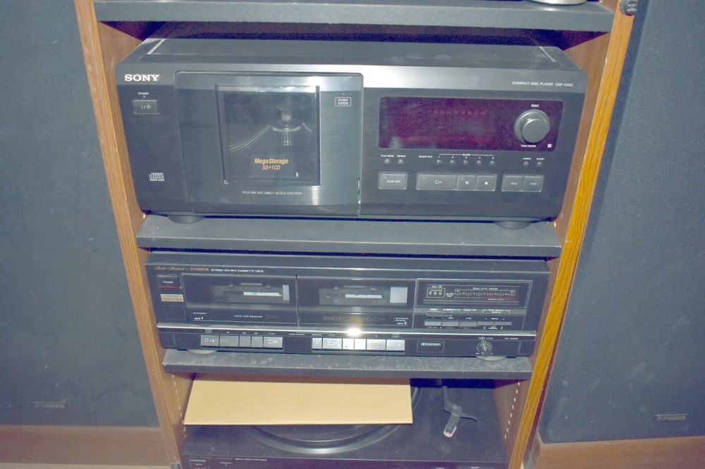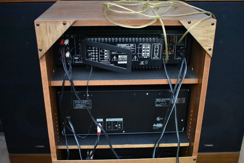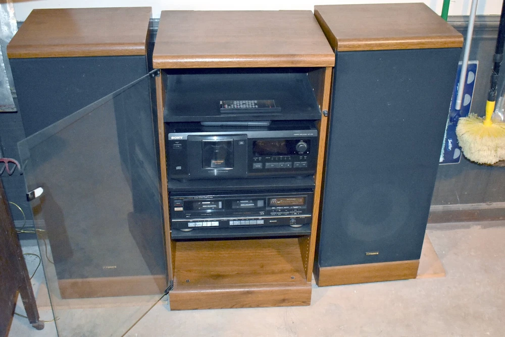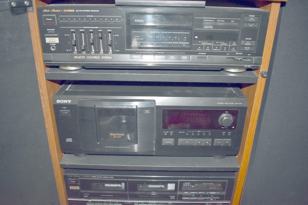 You will never find one of these in this condition. Don't believe me? Come and look! Classic Fisher Studio Standard Stereo System Imitation oak veneer cabinet on casters with matching speakers Repaired / Refurbished in excellent working condition. Fisher RA-722 cabinet, Fisher RS-912 Receiver, Fisher STV-756 Speakers, Fisher MT-912 Turntable, Fisher CR-W912 Cassette Deck, Original Fisher REM-854 Remote Control for all above. Sony CDP-CX53 Compact Disc Player, Original Sony RN-DX200 Remote Control. In their day these systems were “the bomb”! They cost about a grand. Everybody had one. The story: With little use, this system was plastic wrapped and placed into climate controlled storage for years. I discovered and acquired it to create a vintage “80s suite” in an upstairs bedroom. I bought it, spent $200 getting everything in tip top shape, and placed it in the room. The wood grain does not go with the black lacquer bed room set. That is why we’re selling it and for only for what I have put into it. This system is time capsule clean and in exceptional condition. Every function has been confirmed 100% working. It is clean inside and out. Any worn or questionable components were replaced by the legendary Roger of Roger’s Audio Video, Alpharetta, Georgia. When I picked it up, he commented, “It should be good for another 25 years”. Let’s just say for many years to come. Checking online I found this: Reviewed Jan 20th, 2023 bymarcp69 - “Just got The Fisher RS-913A. I think this receiver/amp was part of a cheesy 88' system (speakers, cd, tape, remote). Just opened her up and wow!! Nichicon caps, Toshiba power transistors. No packs in here! Solid stuff. Parts alone make my $45 purchase worth it! Pretty amazing phono stage! Just surprised considering how cheap it looks. Yea, looks can be deceiving… Here is what you get. 1. Fisher RA-722 - imitation oak component cabinet, rolling casters, with magnetic push button glass door, matches the height of the two floor speakers. 2. Fisher RS-912 - Receiver, 5-band graphic equalizer, FM muting. My repair cost $140. 3. Fisher STV-756 - Floor Speakers, 3Way – 120 Watts. Sounds great! 4. Fisher MT-912 - Turntable, semi-automatic, s ervo drive, 45/33. New needle $17. 5. Fisher CR-W912 - Cassette Deck, cleaned heads, checked functions. New belt kit $20. 6. Fisher REM-854 - Remote , r un the system from your easy chair. 7. Sony CDP-CX53 - CD changer/jukebox, holds 50 + 1 CDs. 8. Sony RM-DX200 - Remote, run the CD player from your easy chair. 9. Includes all power and audio cables. Dimensions - The speakers are 14 and 1/4 inches wide, 12 and 3/4 inches deep, and 36 inches Tall. The center cabinet is 19 inches wide, 16 inches deep, and 36 inches tall. Original casters and push button glass door. Cost Estimates: All estimates (eBay 5/1/25) are based on working components in excellent condition, NOT "AS IS" JUNK THAT NEEDS FULL RESTORATION OR REPAIR. · Fisher "RA-722" Cabinet – ($50 - $100) · Fisher RS-913A Receiver– ($100 – $150). · Fisher STV-756 Speakers - ($100 - $300) · Fisher MT-912 Turntable ($40 – $60) · Fisher CR-W912 Cassette Deck - ($60 - $150) plus new belt kit ($20) · FisherREM-854 Remote Control ($10-$25) · Sony CDP-CX53 CD Player/Jukebox - ($60 - $150) · Sony RN-DX200 remote control - ($25 - $35) For those of you that don’t know, WI-FI or Bluetooth wireless adapters are all over Amazon ($10 - $100). What’s that mean? Pick one up, plug it in, turn it on, pair your PC or phone, play all your music through this bad boy… Boom! You’re done! Sold "as is" as always!