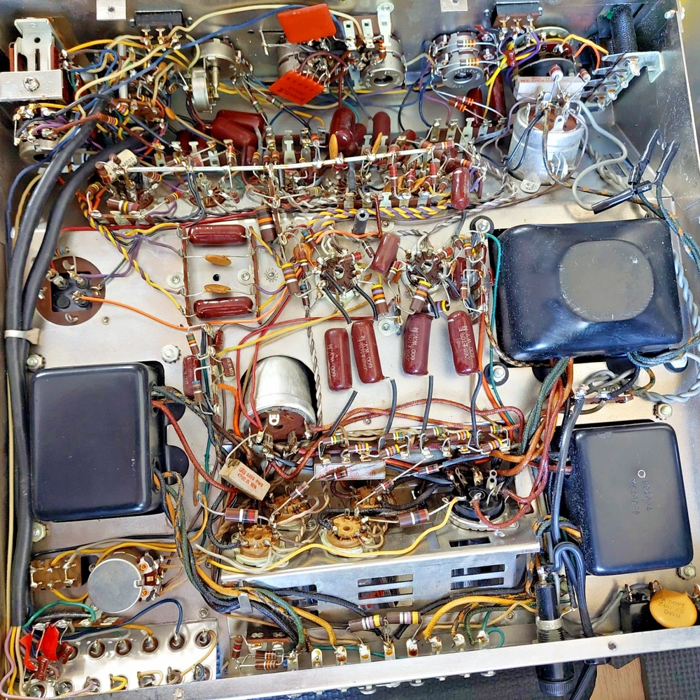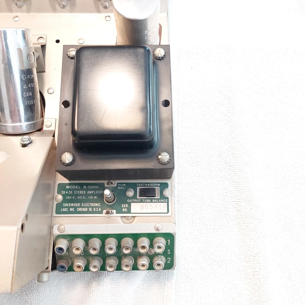 **** Price Reflect a Clean Unit, Fresh Total Restoration and All Vintage either NOS or NOS Tested Balance Premium Tube Complement ( Mullard-Great Britain ,EU-E.Germany & USA. Long Life vacuum tubes ) *** **** FREE LOCAL PICKUP with Demo before Purchase, by Appointment ***** **** Pickup in Cutler Bay, FL. 33190 (Miami-Dade County) **** THIS UNIT IS CROSS LISTED On Multiple Sites*** **** SHIPPING TO USA lower 48 States ONLY To eBay Verified address NO PO BOXES , *** 3 shipping options Economy USPS,UPS,FedEx, Insured, Adult Signature required upon delivery. Pick the lowest cost rate to your zip code and we will make it happen. PLEASE READ THIS ENTIRE DESCRIPTION BEFORE YOU BUY. Ask Questions before you buy. We respond to eBay msgs quickly. This is a Very Long Detailed Description ( NO A/I listing descriptions used here ) ONE(1) FRESH Electronic Restoration(05/17/2025) 1959 SHERWOOD S-5000 (S5000) version=I (S-5000 I) Stereo 12-Tube Integrated Amplifier (RE-Tubed with Premium Tubes all vintage US, Great Britain, E.Germany-Russian vintage tested tubes on a recently Dan Nelson Calibrated TV7D/U tester.) SN# 955418 (Production of the Sherwood S-5000 ca. 1959-1962). Unit will come with Printed copies of the Service manual( all SKU's , parts list, trouble shooting tips ect. and Sherwood S5000 User/Operation/Setup Manual with Diagrams and full Operating Specs. Included Excellent Condition Original Metal Cabinet, Bottom Panel and all original knobs. This unit is In working and excellent sonic condition. Fully tested after restoration for 20hours (Stereo&Mono all Line Level channels with CD player&Cassette Player/Aux, TV & Tape input and also tested both High-Level and Low-Level Phono Channels with a Phillips 312/Stanton EE680 cart. turntable. The chassis is grounded for connection to your turntable ground wire connect to one of the side panel nut/bolt/screws. Original 1959 Excellent Quality Power Supply Stamped in metal 'B9922J3-3 A949937' and Two(2) Original Ultra linear Output Transformers 'B920J4 M549935' all 3 PS/OPTs with Braided Cloth wiring. SPECS: P ower output: 20 watts per channel into 8Ω (stereo) Frequency response: 20Hz to 20kHz Total harmonic distortion: 0.5% Input sensitivity: 2mV (MM), 200mV (line) Signal to noise ratio: 60dB (MM), 80dB (line) Speaker load impedance: 4Ω, 8 Ω, 16Ω Valve complement: 4 x 7189( EL84/6BQ5/E84L/7320 ), 2 x 7199, 5 x 12AX7/ECC83, 1 x 5AR4/GZ34 notes on Power tubes: 6BQ5/EL84's ave. life 500 hours, 7189=6BQ5B 1,000 hours average, E84L/7320 premium tubes average life 5,000 hours. Dimensions: 14 x 13.5 x 4 inches net weight: 32.5 lbs (amp with tubes and shields) Shipping Weight: 39lbs, well padded heavy duty box 20x20x10" Vacuum Tube Complement (mixed Vintage USA, Great Britain, East German/Russian) : 4xNOS Date Matched('79-22') Quad E84L's/ 7320 Gold Pins branded for DuMont (The E84L/7320 is a premium Long-life version of 7189's= /6BQ5B/ which were upgraded versions of EL84's/6BQ5's). Quad is white inked "Made in Germany" "7320/E84L". then Red ink "ERP" "79-22" . This quad have solid disk top-side getter with a center dimple and were either made in East Germany or made by Reflector in Sartov, USSR to Russian military specs for export. 5x 12AX7/A's (3 are Mullard inked 'Great Britain' 1965 'I63' 2x'B5J4' 'B5K2' inked 'Made in Great Britain' branded for GE. The 4th is a late 1960's 'IE' GE 7025/12AX7A(best inserted in V1-for low noise phono amplifier tube) and the 5th is a GE 12AX7A dated 1964. All tubes tested balanced and strong) 2x 7199 vintage 1960's Black Plate USA tested trong. One RCA(early 1960's) and one Westinghouse(1967) 1x5AR4/GZ34 NOS unused Sovtek(Tested very Strong NOS+ balanced plates dated 2001 Russia -High reliability tube) Notes: Our 50years+ exp. with Cabinets/Cages/Covers/Consoles enclosures : ( cabinets, metal cages and Console Enclosure hinder air-flow and as such your tubes will only generally last 1/2 as long. So we suggest operating this Sherwood S-5000 outside of its cabinet for daily use. We also suggest using all tube audio units in operation without covers. Additional we suggest using a high quality computer fan behind these tube type units to dissipate vacuum tube heat ( just visit your local Computer repair/parts store many have fans available for low cost). In 2025 a NOS vintage tube complement(12 Premium tubes) in these units cost was as much as an unrestored unit with average/user supplied used tubes. 'A Light that burns twice as bright( twice as Hot without ventilation ) burns 1/2 as long' . Please Follow this suggestion and Your tubes will love you! ). For Shipping: This unit will be mounted securely in its original metal cabinet and wrapped very well after we pull and pack all tubes carefully inside a separate box. This Unit&Cab, Tubes and all Docs with this printed description will then all be packed into a New Heavy Duty ULINE/UHAUL Small Electronics box 20"x20"x10" all 6 sides will have ample thick Styrofoam padding. Restoration work done to Factory Specifications. Full Details of restoration are below: About us: We are Honest Sellers and Great Communicators 27+year seller to Happy Customers on ebay with 100%+ feedback on Vintage Electronics[Tubes, Amps/PreAmps/Receivers/Radios/Speakers and other tube type audio Gear): We have sold analog tube audio units since PRE-Ebay DAYS from the late 1970's. Please read our feedback from very recent sales of Tube Audio PreAmps ( Dyna PAS-2, Valve Audio Labs MP-L1S MKII ), Receivers( Fisher 400), Int Amps (Harman Kardon A30K/A300, Eico ST-40), Power Amps (Dynaco ST-70), Tube Type Analog Tuners(AM/FM) stereo Radios( SCOTT LK-110 Stereomaster MPX, Fisher 1000-R(101-R) ). Please contact us before you purchase if you have < 10+ feedbacks. Our buyers tend to be higher-end audiophiles and audio collectors. We always welcome 'newbies' to the tube audio world but if this is your 1st tube amp purchase please have a friend who has exp. with tube audio to help and assist you in setup and pr