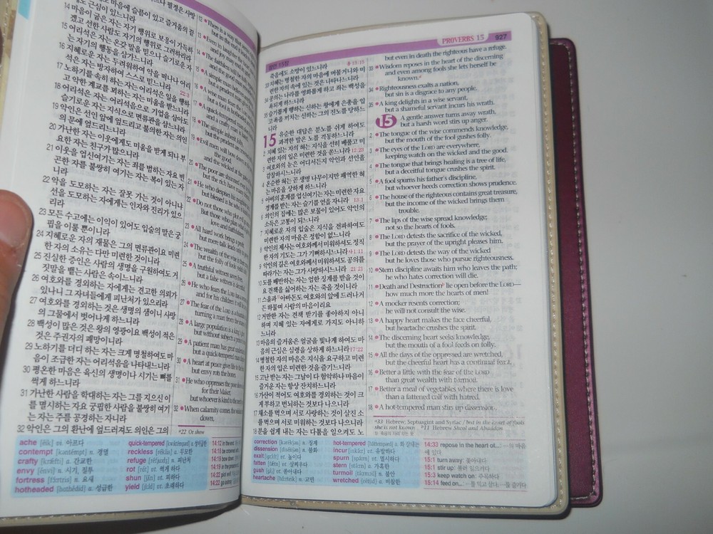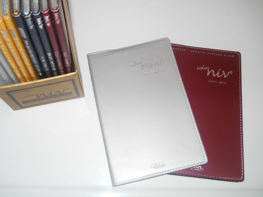 Comes in original box with all 12 flex-bound books.Box has a small nick. The Flex-bound books are 7 " x 5" RARE SET The left side of each page is in Korean and the right side is in English.