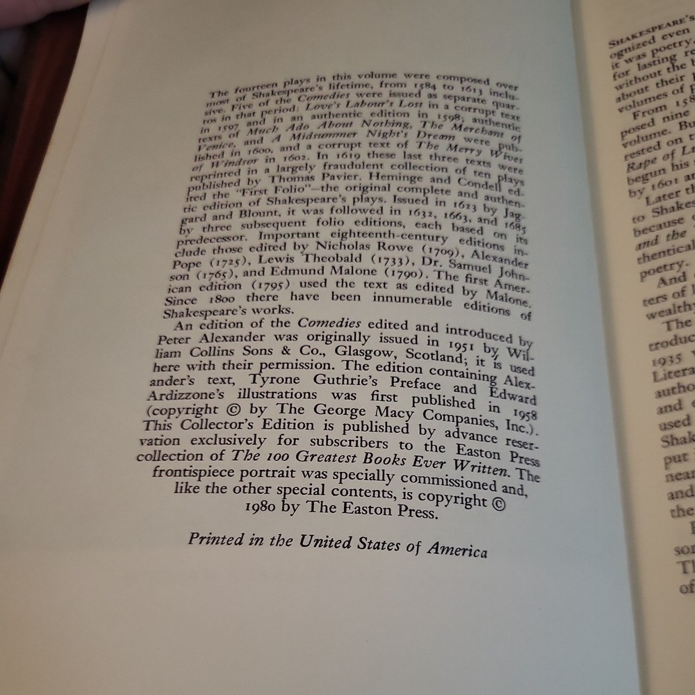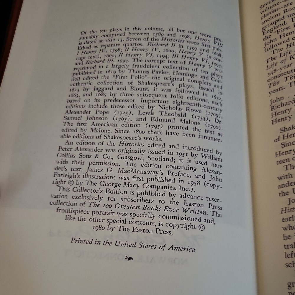 Comedies, & Histories of William Shakespeare Easton Press Set 📚 2 of 3