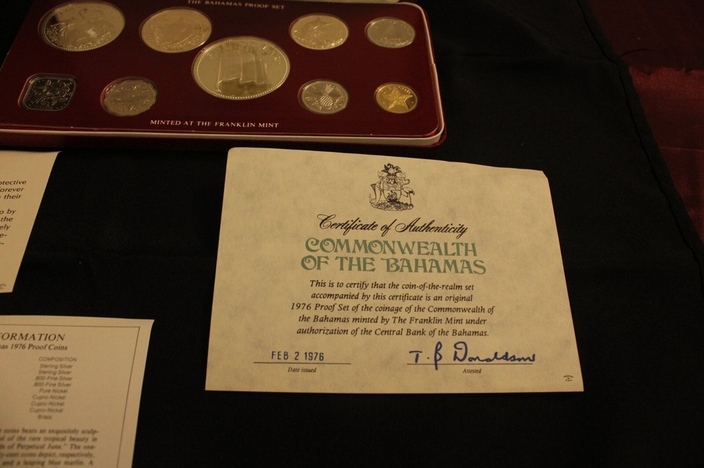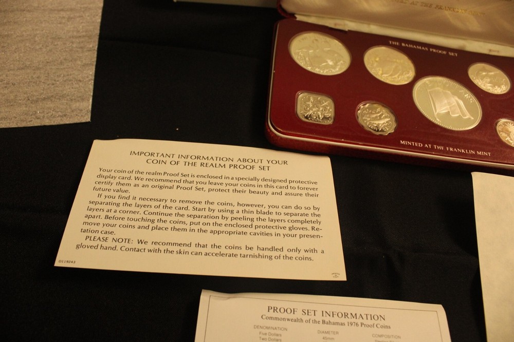 Excellent condition. Includes all you see in the photos, including COA and leather-bound box. Not all coins are silver. Please see photos. The two and five dollar coins are sterling silver. Ref: #7707. We ship from our shop in Lowell, MA (zip code: 01852).
