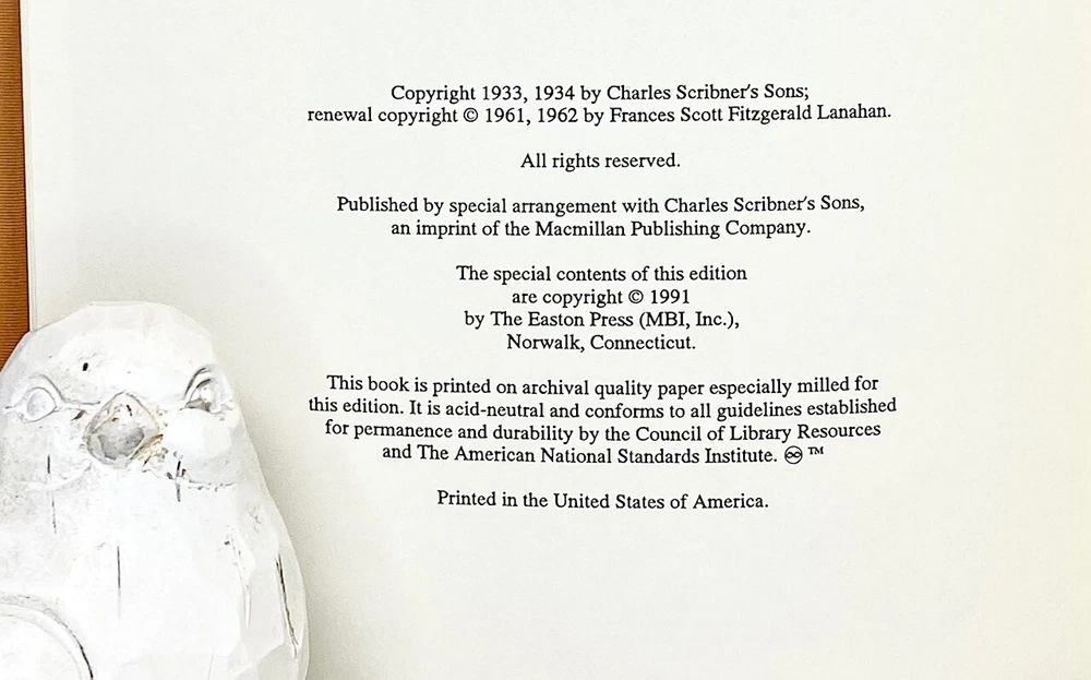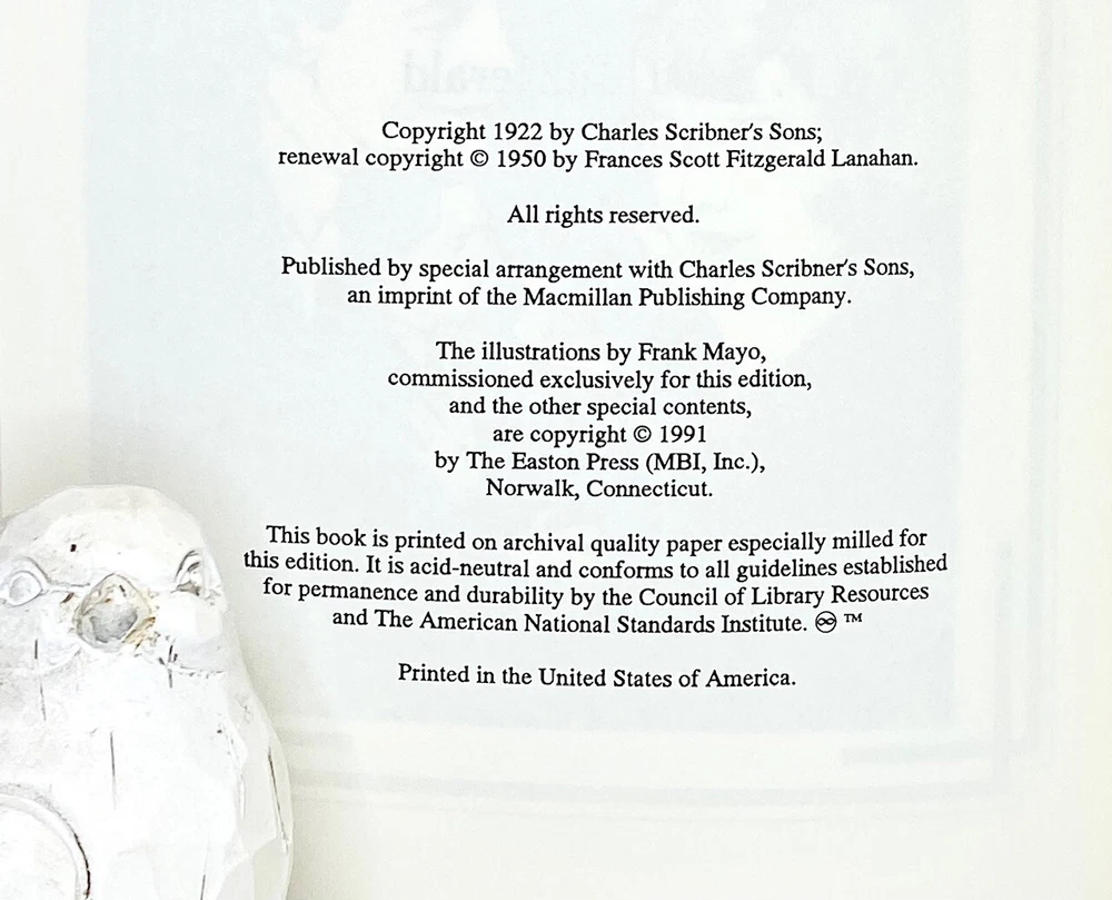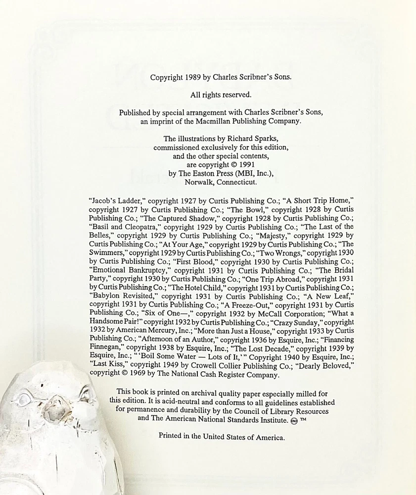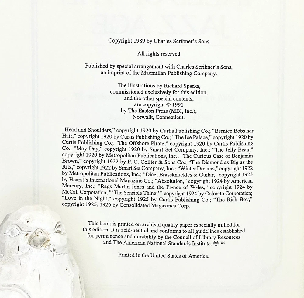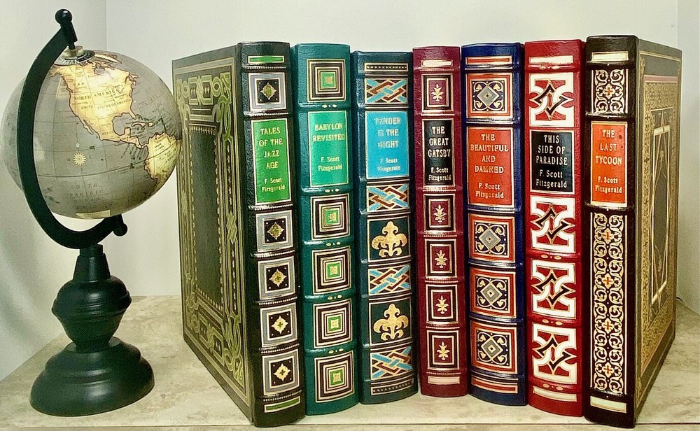 Complete Art Deco Fitzgerald Set: The Great Gatsby, Babylon Revisited, Tales of the Jazz Age, Tender is the Night, The Last Tycoon, This Side of Paradise, Beautiful and the Damned Condit ion and Terms These books are in excellent preowned condition. There are no attached bookplates, embossed seals, or other owner-marks to the interior. Sharp corners, no conspicuous scuffs or rubs to the exterior (The Last Tycoon does have two little spots next to the title on the spine where the orange has worn off). There are little to no imperfections to the gilded page edging. Please see the photographs for the best description and feel free to request additional photos if desired. Be sure to check out our other listings at Settembrini’s Selections. You can save on shipping by buying multiple books and asking that we combine the shipping. Returns are only allowed due to shipping damage or item not being as described. Due to USPS insurance claims procedures, partial refunds are not allowed due to shipping damage. Items damaged in shipping must be returned in the original packaging as received. The USPS requires inspection of the packaging and item damaged. Synopsis Tales of the Jazz Age- Tales of the Jazz Age (1922) is a collection of eleven short stories by F. Scott Fitzgerald. Divided into three separate parts, according to subject matter, it includes one of his better-known short stories, "The Curious Case of Benjamin Button". Babylon Revisited- a short story by F. Scott Fitzgerald, written in 1930 and first published on February 21, 1931 in the Saturday Evening Post and free inside The Telegraph, the following Saturday.The story is set in the year after the stock market crash of 1929, just after what Fitzgerald called the Jazz Age. Brief flashbacks take place in the Jazz Age. Also it shows several references to the Great Depression and how the character had to adapt his life to it. Much of it is based on the author's own experiences. Tender is the Night- Set on the French Riviera in the late 1920s, Tender Is the Night is the tragic romance of the young actress Rosemary Hoyt and the stylish American couple Dick and Nicole Diver. A brilliant young psychiatrist at the time of his marriage, Dick is both husband and doctor to Nicole, whose wealth goads him into a lifestyle not his own, and whose growing strength highlights Dick's harrowing demise. A profound study of the romantic concept of character, Tender Is the Night is lyrical, expansive, and hauntingly evocative. The Great Gatsby- F. Scott Fitzgerald's third book, stands as the supreme achievement of his career. This exemplary novel of the Jazz Age has been acclaimed by generations of readers. The story of the fabulously wealthy Jay Gatsby and his love for the beautiful Daisy Buchanan, of lavish parties on Long Island at a time when The New York Times noted "gin was the national drink and sex the national obsession," it is an exquisitely crafted tale of America in the 1920s. The Beautiful and Damned- Embellished with the author's lyrical prose, here is the story of Harvard-educated, aspiring aesthete Anthony Patch and his beautiful wife, Gloria. As they await the inheritance of his grandfather's fortune, their reckless marriage sways under the influence of alcohol and avarice. A devastating look at the nouveau riche, and the New York nightlife, as well as the ruinous effects of wild ambition, The Beautiful and the Damned achieved stature as one of Fitzgerald's most accomplished novels. Its distinction as a classic endures to this day. This Side of Paradise- This Side of Paradise, F. Scott Fitzgerald's romantic and witty first novel, was written when the author was only twenty-three years old. This semi-autobiographical story of the handsome, indulged, and idealistic Princeton student Amory Blaine received critical raves and catapulted Fitzgerald to instant fame. Now, readers can enjoy the newly edited, authorized version of this early classic of the Jazz Age, based on Fitzgerald's original manuscript. In this definitive text, This Side of Paradise captures the rhythms and romance of Fitzgerald's youth and offers a poignant portrait of the "Lost Generation." The Last Tycoon- Unfinished at the time of his death, The Last Tycoon was F. Scott Fitzgerald’s last novel, compiled and published posthumously. A Hollywood heavyweight, Monroe Stahr embarks on a passionate but ill-fated love affair with the beautiful Kathleen Moore while struggling to hold on to his success and fend off his chief rival, Pat Brady. Published under the working title The Last Tycoon, in the decades following Fitzgerald’s death it has been accepted that he intended the work to be titled The Love of the Last Tycoon; it has been published as such since 1993. Although incomplete, The Last Tycoon has been adapted for television and film based on Fitzgerald’s extensive notes and outlines for the complete work. This edition of The Last Tycoon contains the six chapters that had been completed at the time of Fitzgerald’s death in 1940.