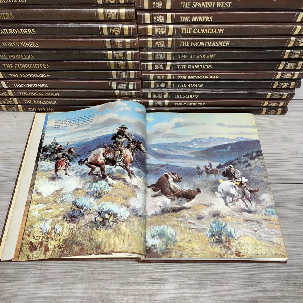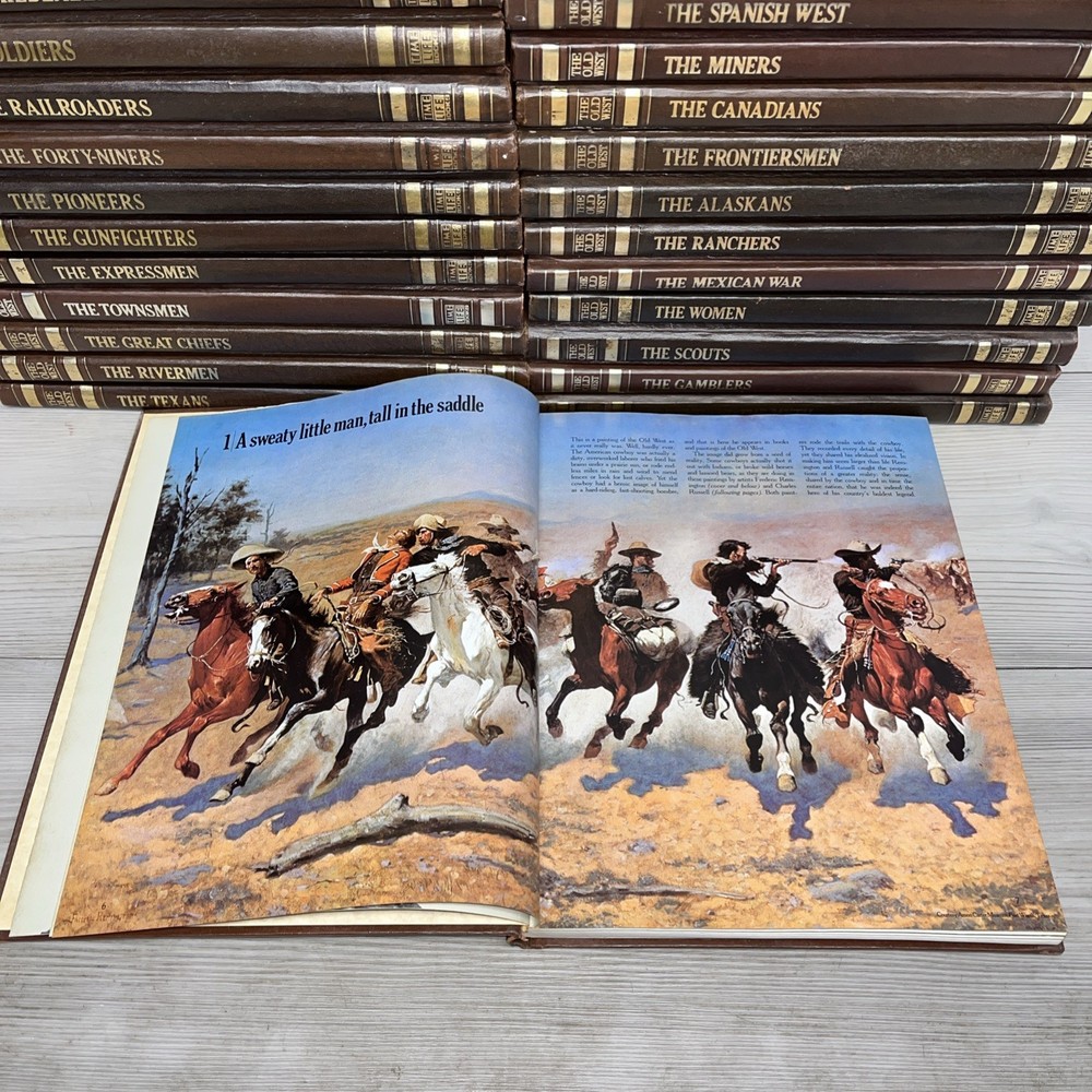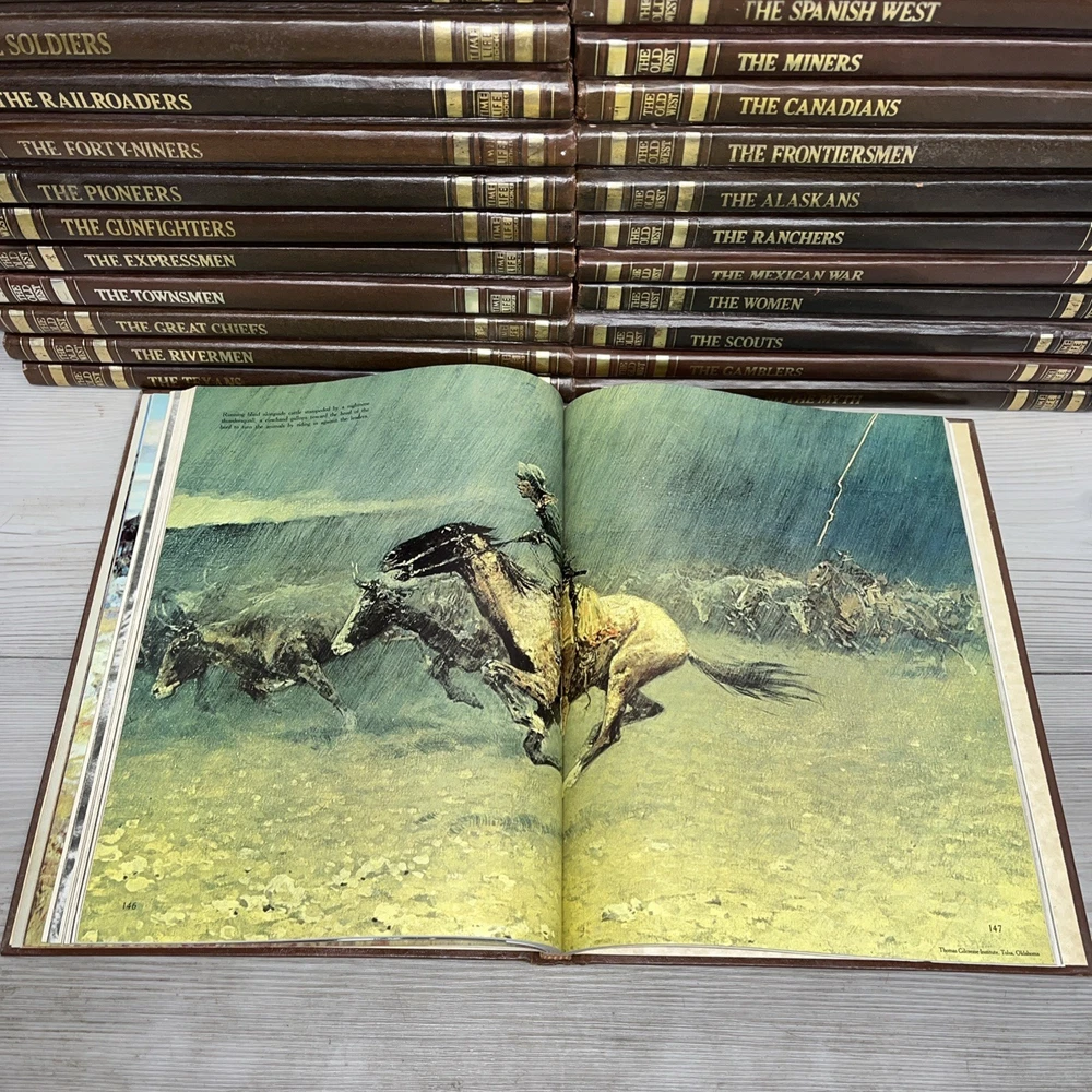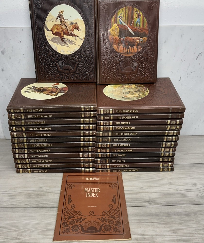 The Complete SET of 26 books in The Old West series by Time Life Books is a leather-bound collection published in 1973. This set provides a comprehensive look at the history and culture of the American West, with each book focusing on a different aspect of the region. With the high-quality craftsmanship of the leather binding, this set offers a durable and stylish addition to any library or collection. Ideal for history enthusiasts and collectors alike, The Old West series offers a valuable and immersive exploration of the American frontier. Back Room
